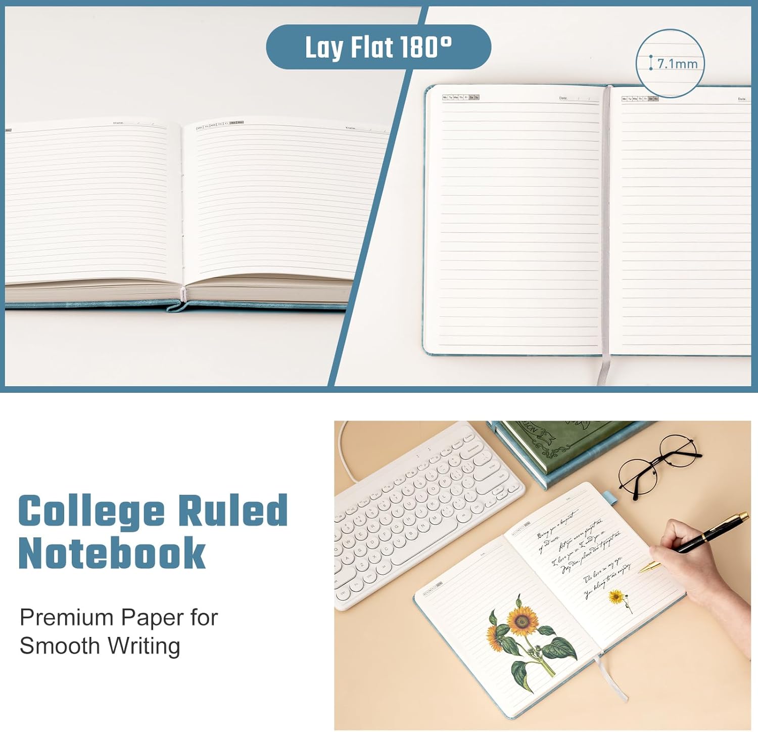 - Smooth Writing Experience: A5 size lined notebook, 7.1 mm college ruled journal for writing is made of 100 GSM high quality paper, no ink bleed when writing, can be 180 ° flat, give each girl a comfortable writing experience.