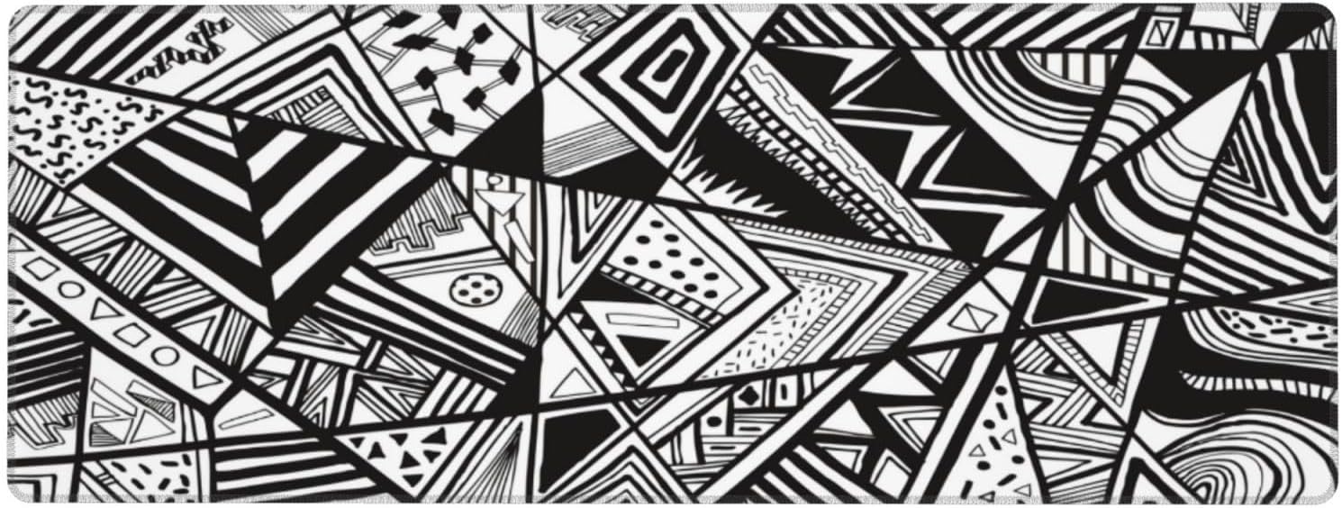 Gaming Mouse Pad, Large Non-Slip Rubber Base Mousepad, Keyboard Mouse Mat, Desk Pad with Stitched Edges, 31.5x11.8inch,Black Checkered Abstract Pattern