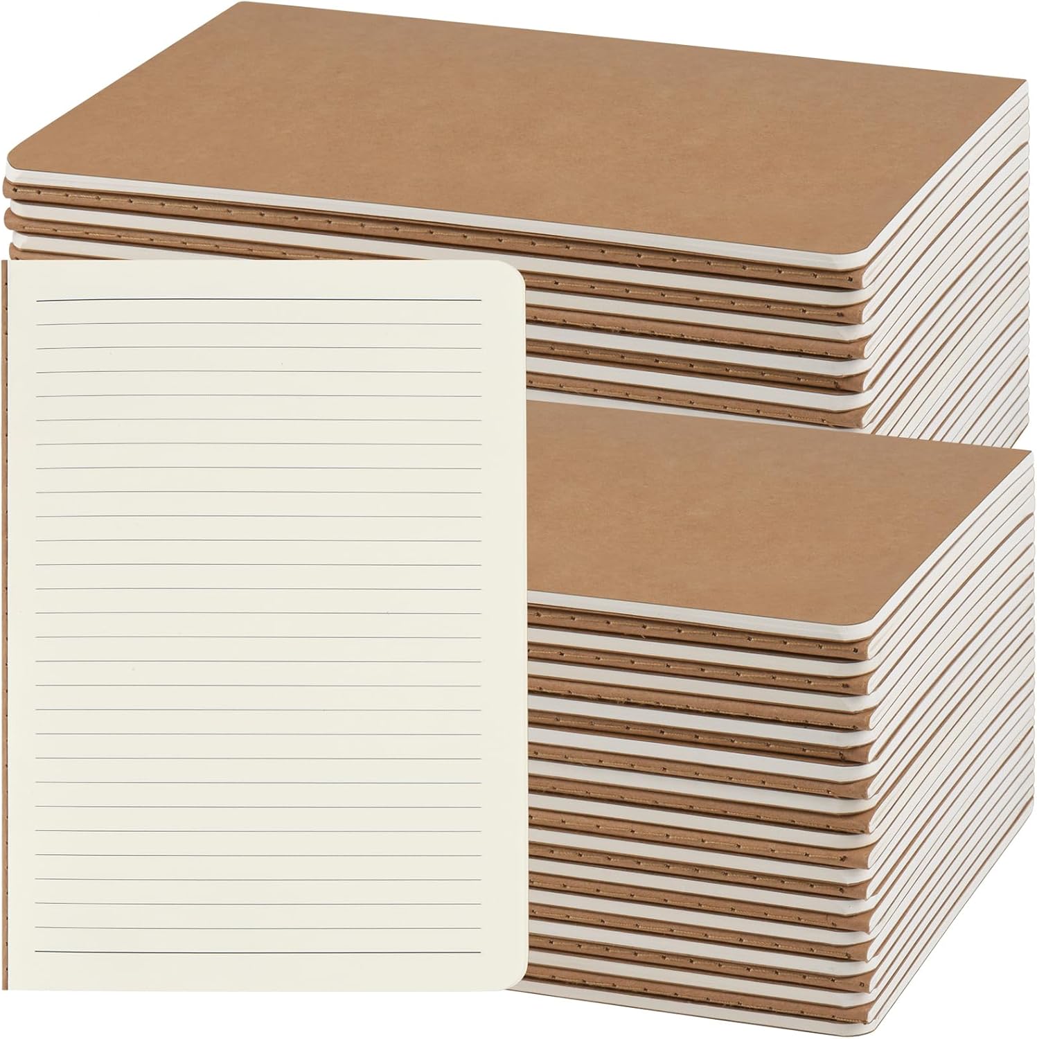 ZCZN 50 Pack A5 Kraft Notebooks Bulk, 8.15x5.5 Inches Lined Paper Journaling Notebooks, Notebooks for Work, Composition Notebooks for School, Journal Notebooks for Office, 60 Pages