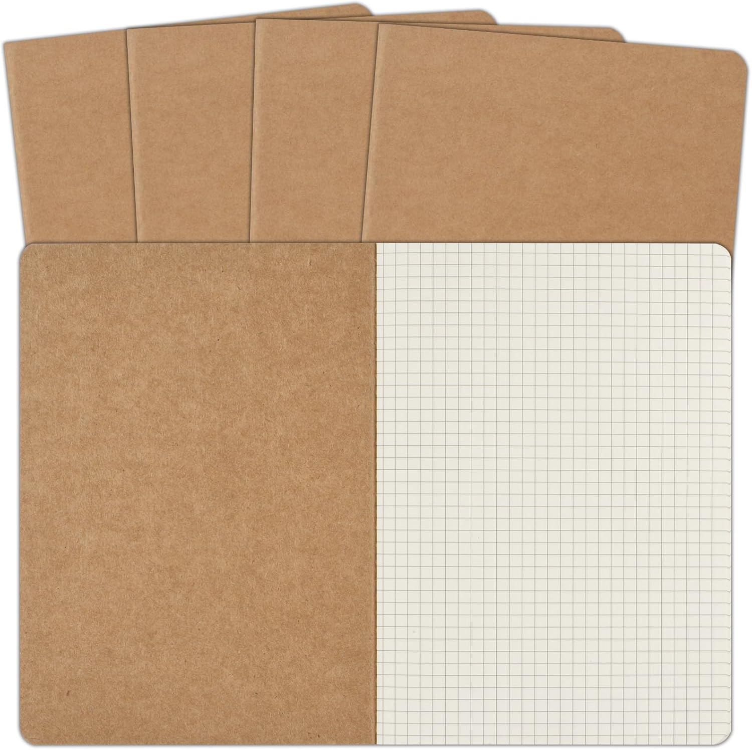 ZCZN 5 Pack A5 Kraft Notebooks Bulk, 8.15x5.5 Inches Graph Paper Journaling Notebooks, Notebooks for Work, Composition Notebooks for School, Journal Notebooks for Office, 60 Pages