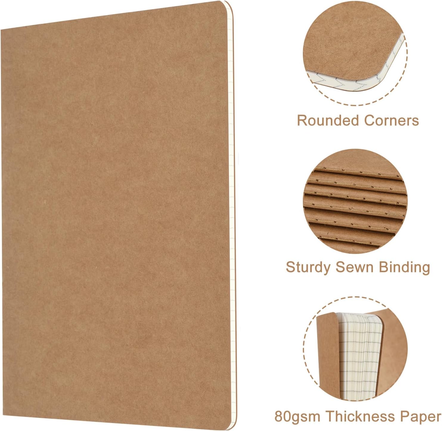 - Study Paper: These work notebooks are designed for easy note-taking, featuring a 180Β° lay-flat design and secure binding to prevent pages from falling out. The durable Kraft paper cover ensures long-lasting use, while the beige inner pages help reduce eye strain and provide a comfortable writing experience. The thick, high-quality paper prevents ink bleed-through, making it ideal for writing or sketching