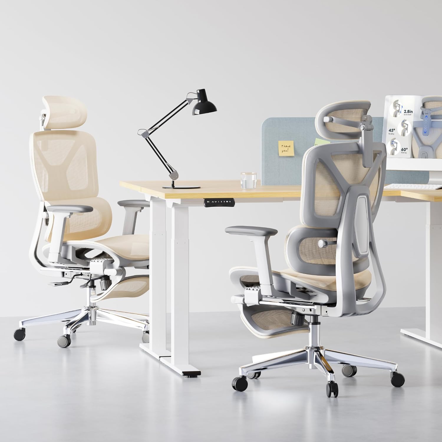 FLEXISPOT ErgoX Premium Ergonomic Office Chair with Footrest- Adjustable 3D Armrests, Dynamic Lumbar Support, Recline & Tilt Function, Mesh Seat, for Home & Office Use,Cream