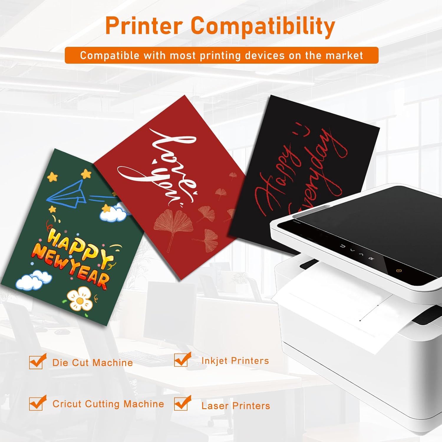 - Printer Compatibility:our thick premium paper card stock is compatible with most types of laser printers, inkjet, die-cutting machines, and cricut cutting machines. Please ensure that your printer can print on 250gsm before ordering