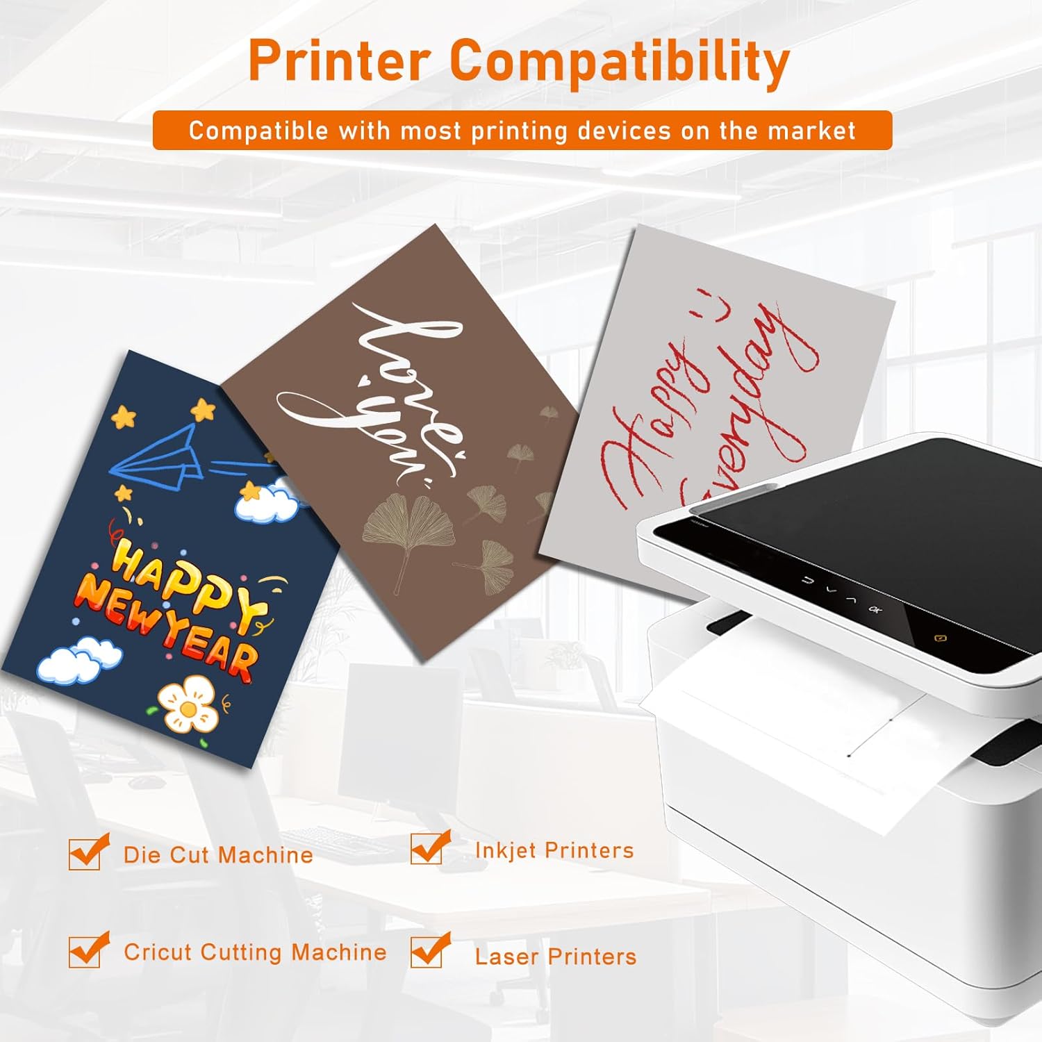 - Printer Compatibility:our thick printer paper card stock is compatible with most types of laser printers, inkjet, die-cutting machines, and cricut cutting machines. Please ensure that your printer can print on 250gsm before ordering