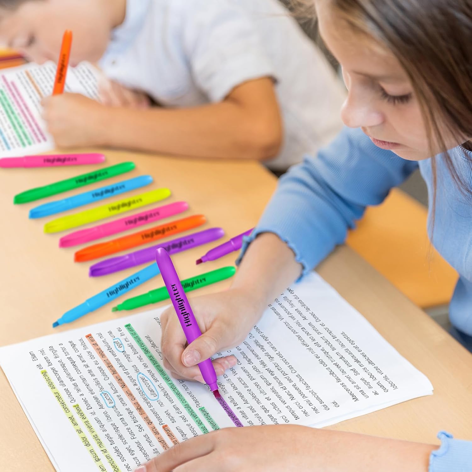 - Assorted Colors Highlighter: 240 pack highlighters bulk contains 6 bright fluorescent colors to help you classify different topics or concepts. Including yellow, pale blue, pink, purple, green, and orange, perfect for color coding and highlighting favorite book passages or notes. If you are looking for smooth, pretty, light pastel highlighters, then these will not disappoint