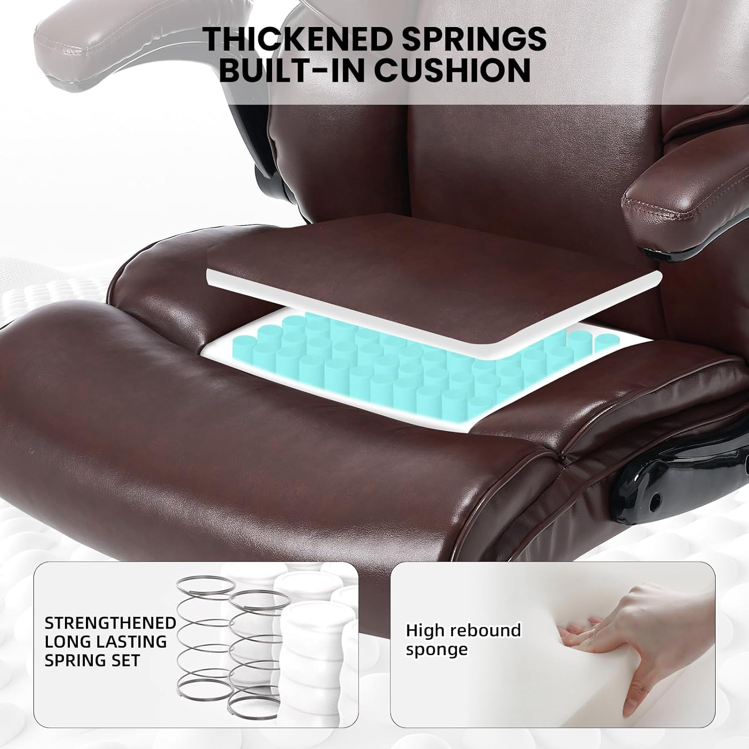 - πΊπππππ: Leather office chair built on a foundation of durability. Heavy-duty metal base and SGS-certified 4-Grade lift cylinder ensure not only steadfast executive chair with leg rest stability but also peace of mind with big and tall office chair every adjustment.