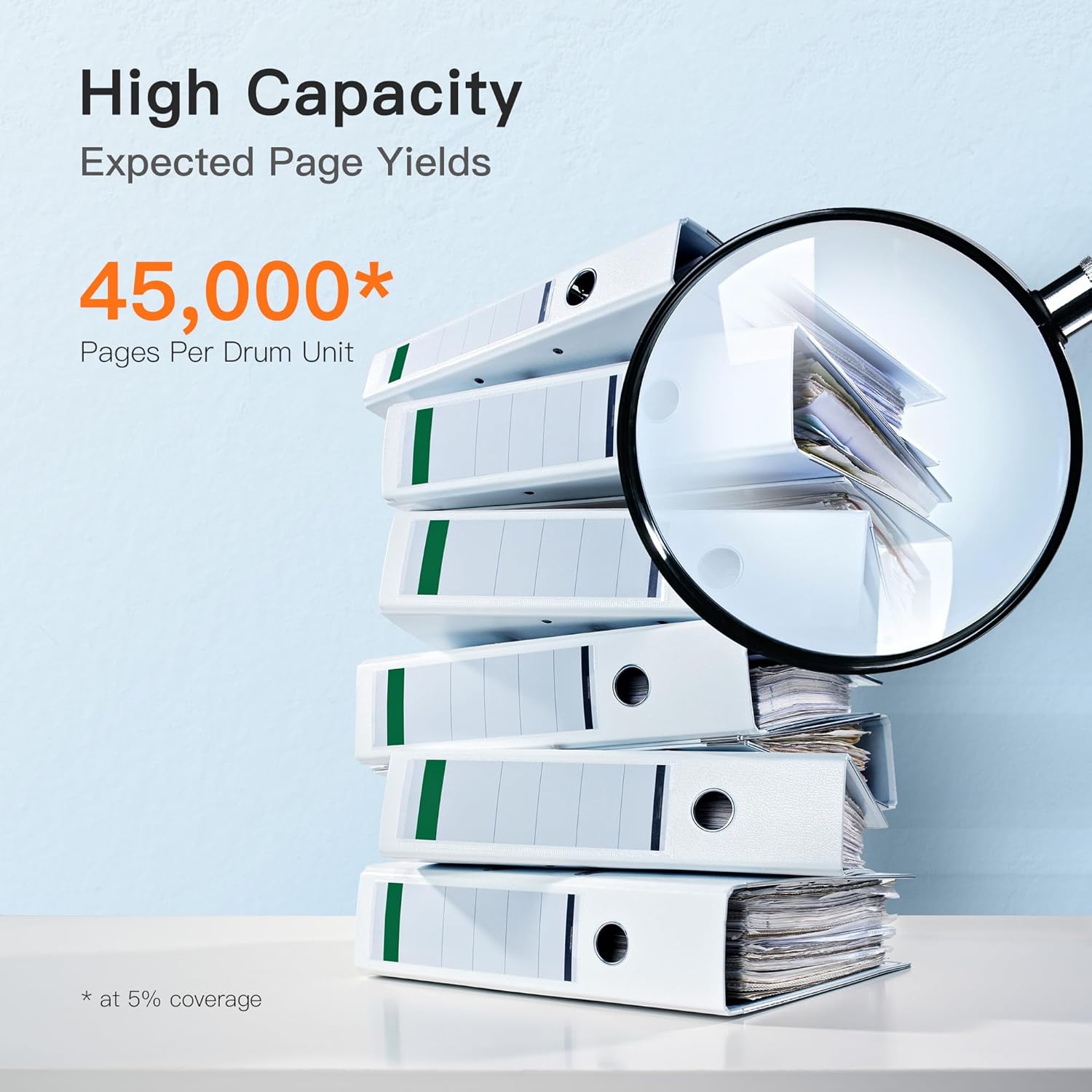 - Page High Yield: 45000 pages per DR 920 drum unit at 5% coverage