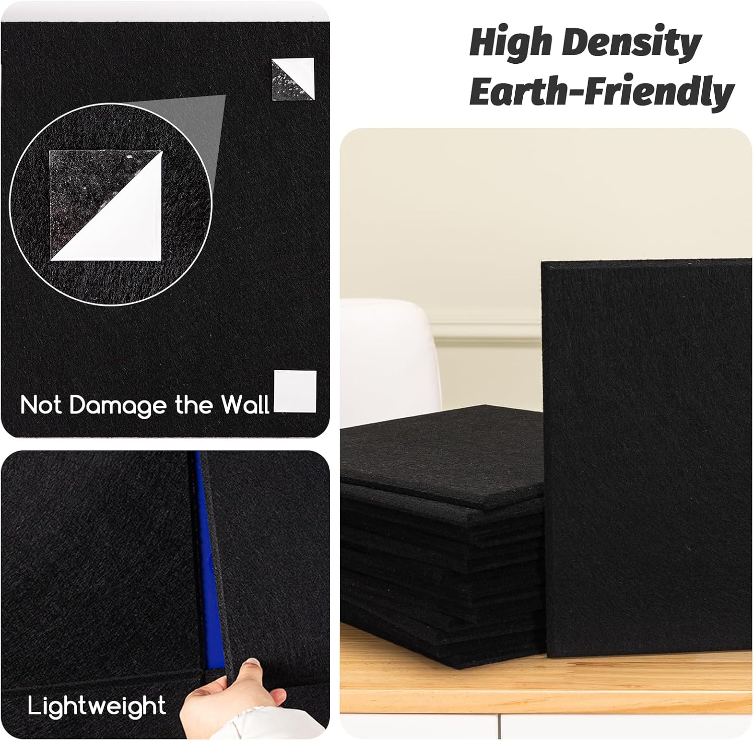 Large Cork Board Alternative, 12 Pack Felt Board with Safe Removable Adhesive Tabs Felt Wall Tiles, Large Cork Boards for Walls, Cork Board for Home Office, Pin Boards for Walls, Black