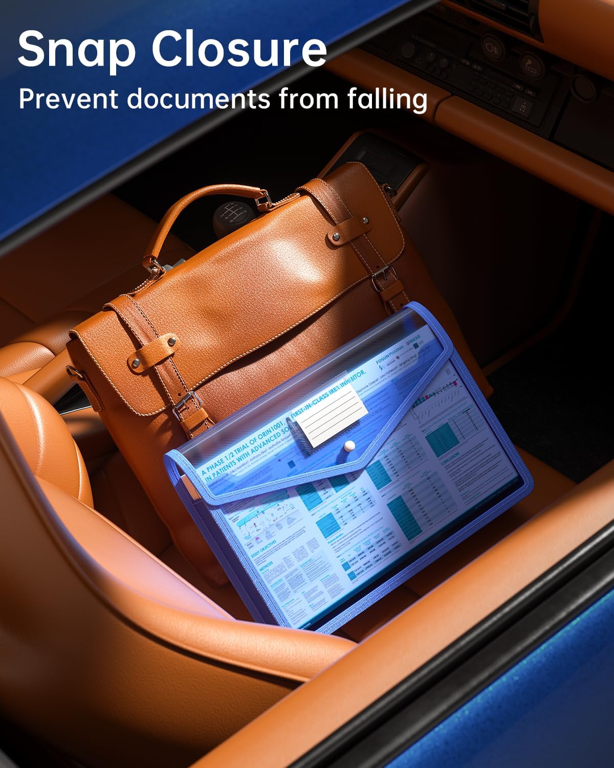 - 【Premium Quality expanding file folder】Made of super thick polypropylene, tear and water resistant, no odor, non-toxic, environmentally friendly, not easy to break and deformation. Ideal for long term storage your important document. Exquisite sewing craft, superb workmanship make the reinforced cloth sewn edge for extra durability.