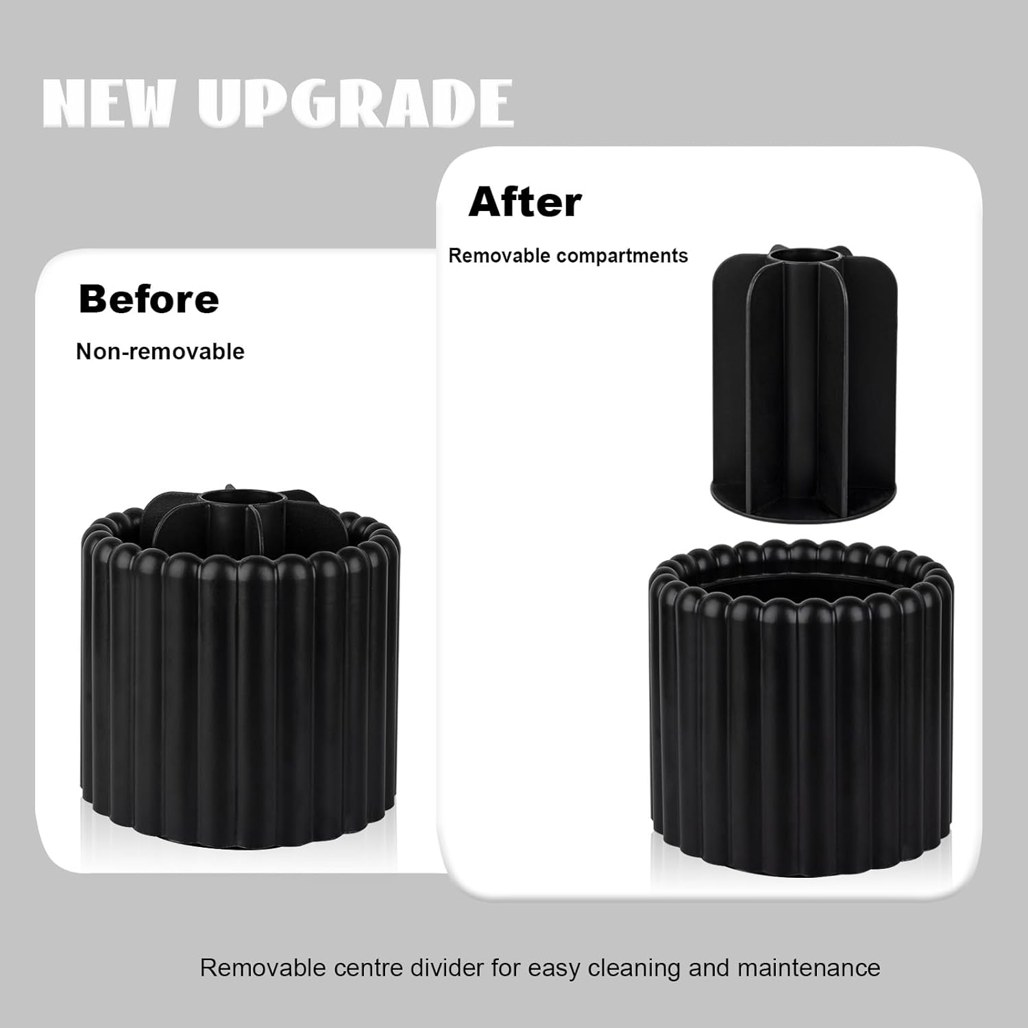 - SMOOTH ROTATING: The rotating base does not touch the countertop ( 0.35 inches above the countertop), and there are four non-slip rubber pads on the base, the makeup brush container cup will not move when rotating and rotates smoothly.