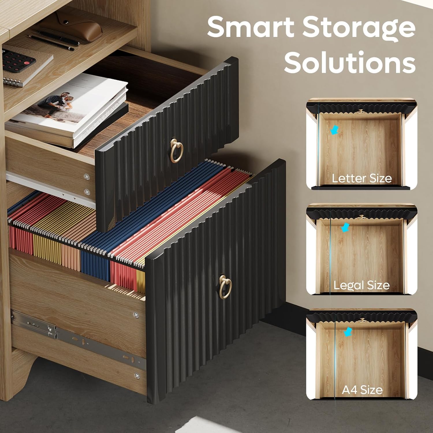 - Efficient Storage: Bestier modern desk features an open storage compartment, a storage drawer and a file drawer for letter/A4/legal-size hanging file folders, providing efficient storage solutions to keep your workspace organized and your essentials within reach