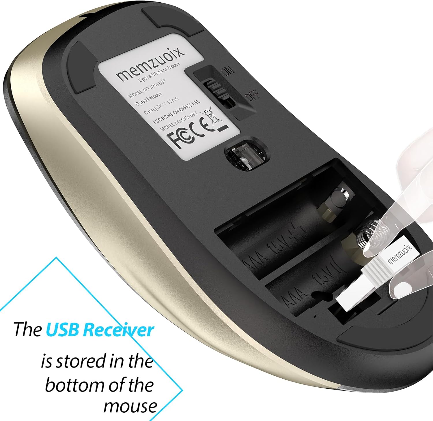 memzuoix 2.4G Wireless Mouse, 1400 DPI Computer Mice with USB Receiver, Portable Wireless USB Battery Powered Cordless Mouse for Laptop, PC, Desktop, 5 Buttons (Black Gold)