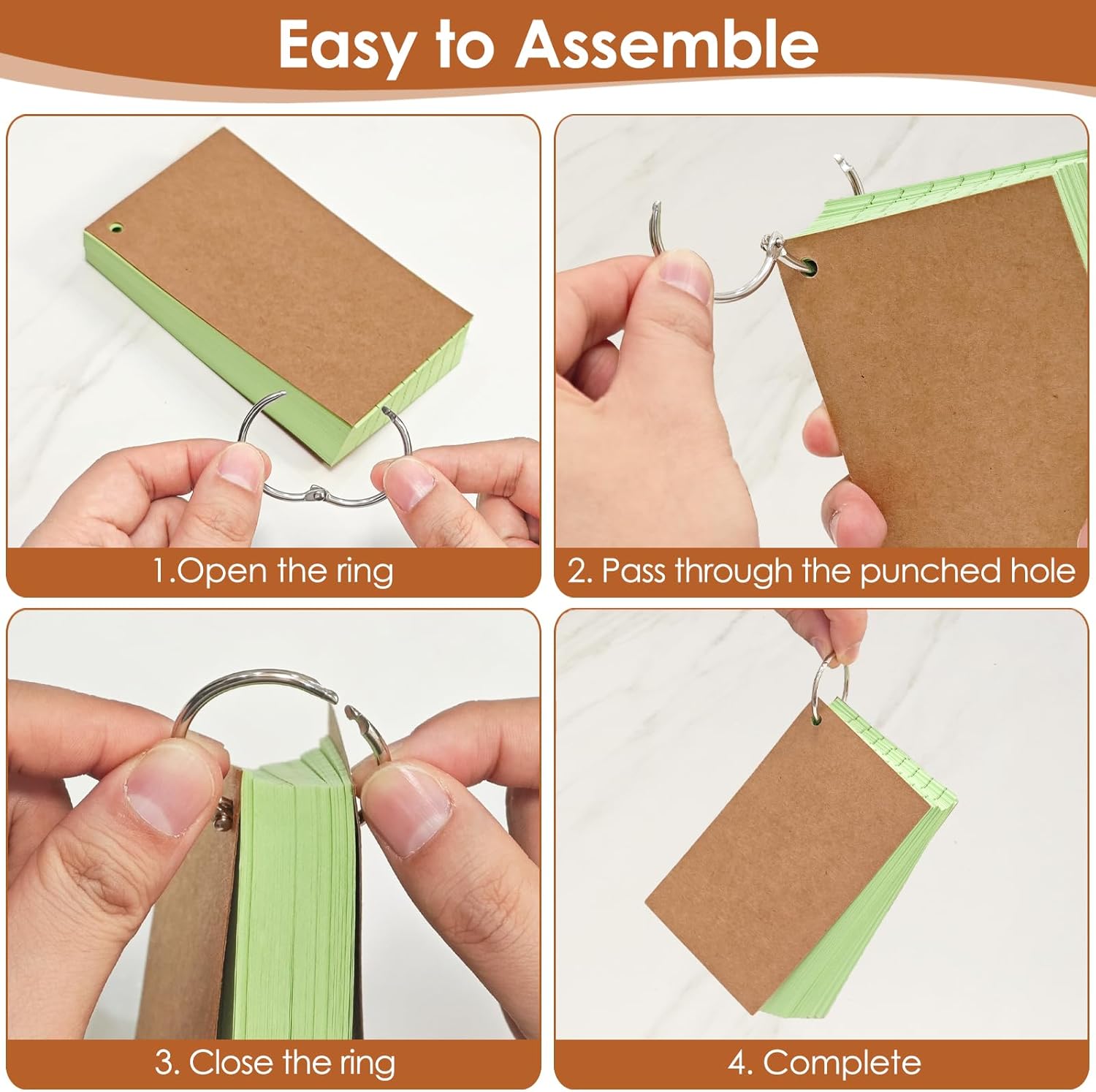 - BINDER RING AND SIZE: This note cards come with 8 pieces of stainless steel binder rings, which are easy to install and keep them together, convenient to hang or take down the index cards . The index cards with ring are 3 x 5 inches, compact and portable, so you can put the notecards in your pocket or backpack, easy to take out and record at any time