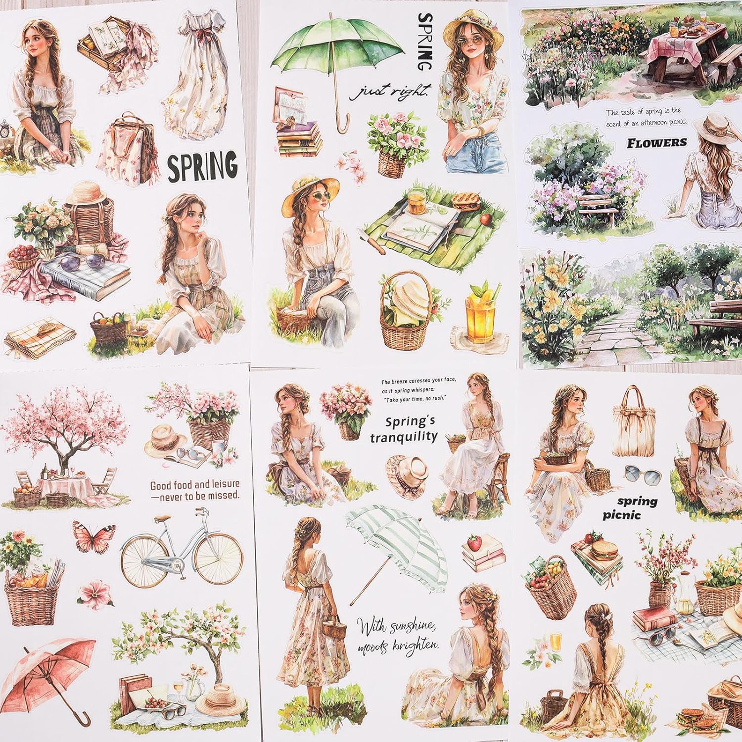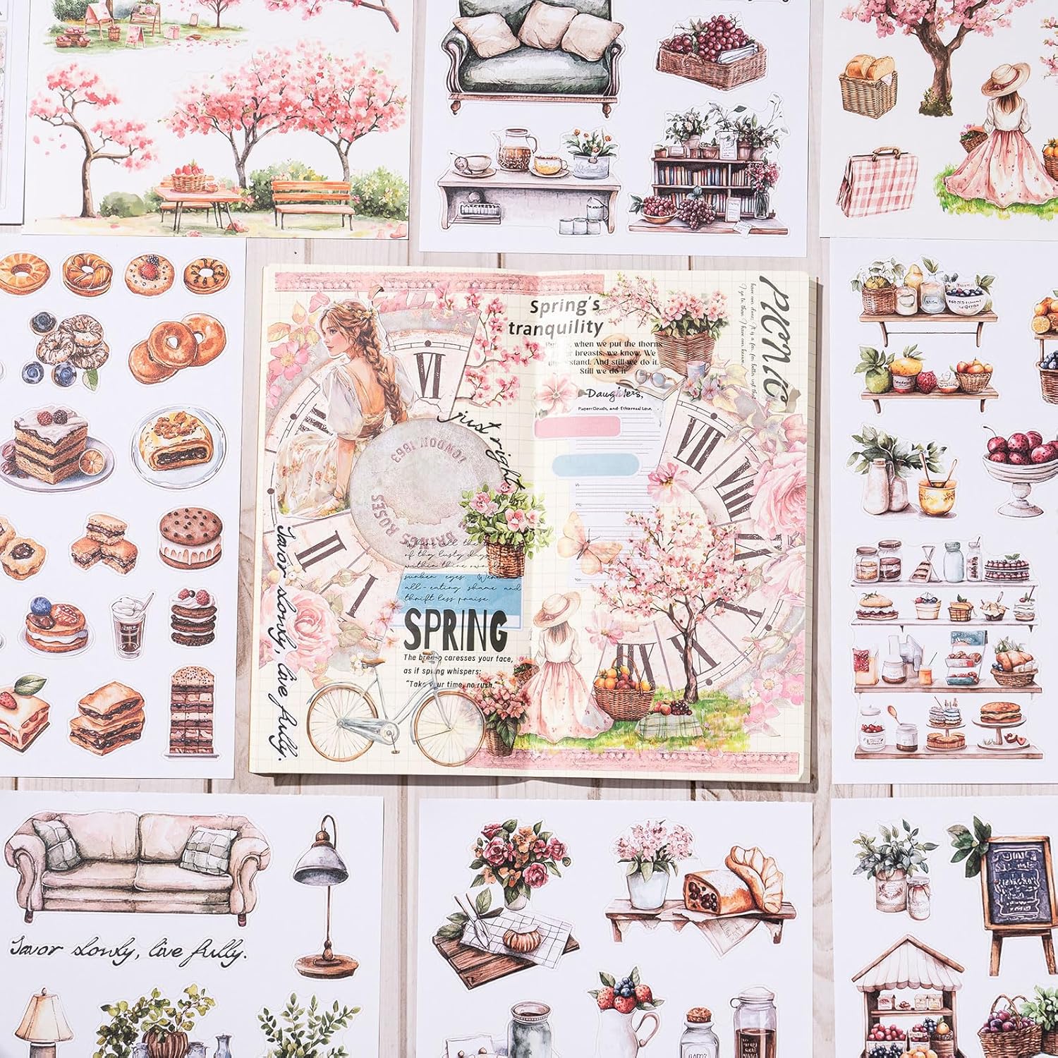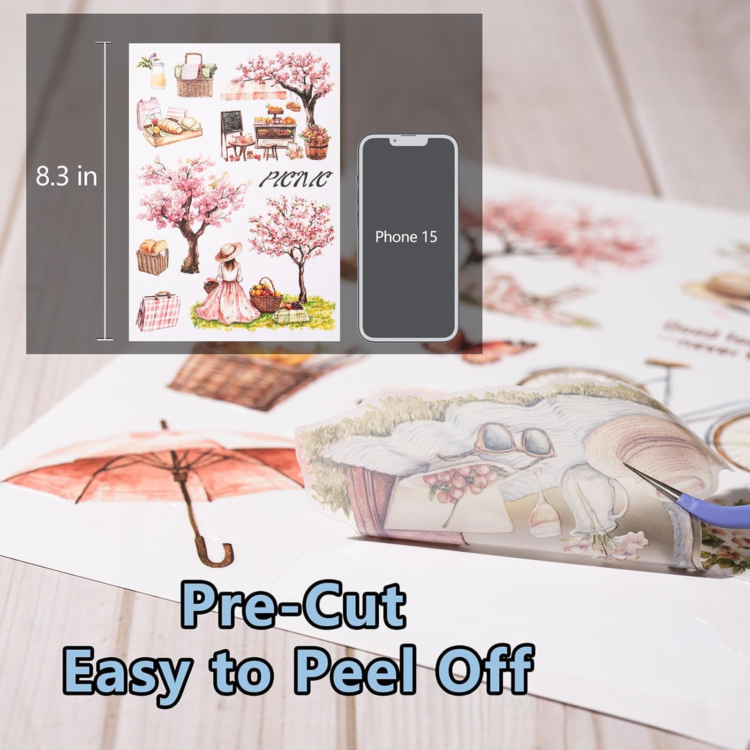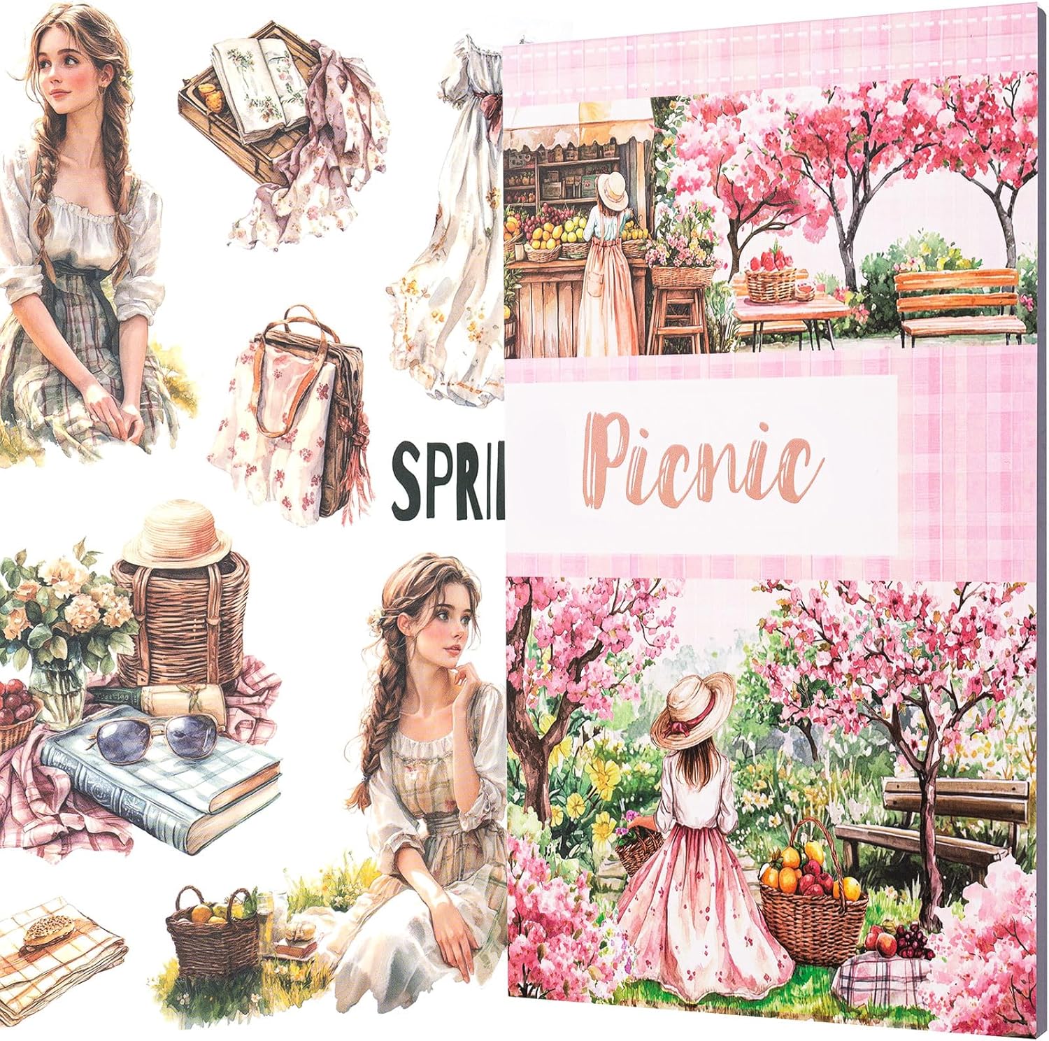 YagCu Scrapbook Sticker Book, Picnic Journaling Stickers, Junk Journal Supplies, Pre-Cut Aesthetic Scrapbooking for Adults, Decorative Ephemera Bullet Planner DIY Arts Craft Collage