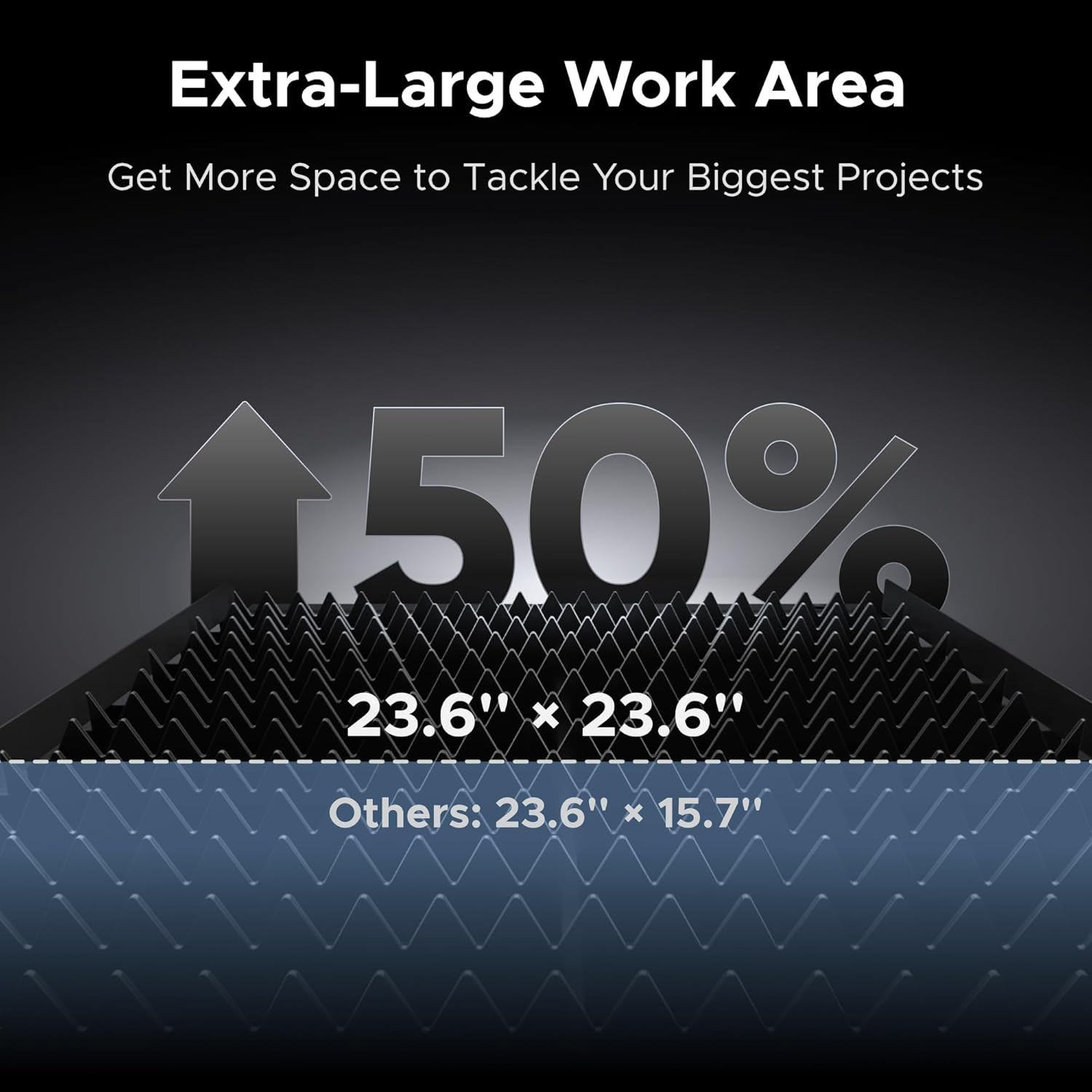 - Handle Large Pieces with Ease: The spacious 23.6 x 23.6 in. workspace, combined with the open-access design, offers effortless handling of oversized sheets up to 24.8 in. wide, making large projects more manageable.