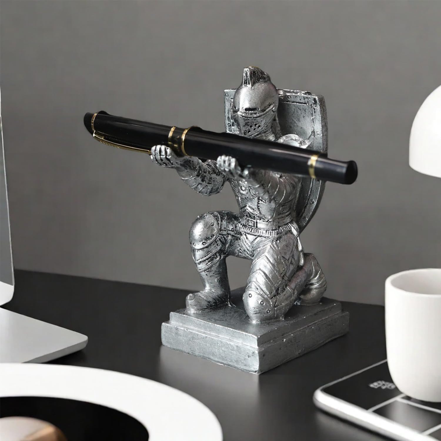 - ăGreat Decorationă The resin pen holder for desk with mightier shape, Symbol the powerful for neither a men nor women ,also it looks great as a desk ornament ,Suitable for offices, study and living room etc. The knight pen holder embodies confidence and strength, aiding you in your career endeavors.