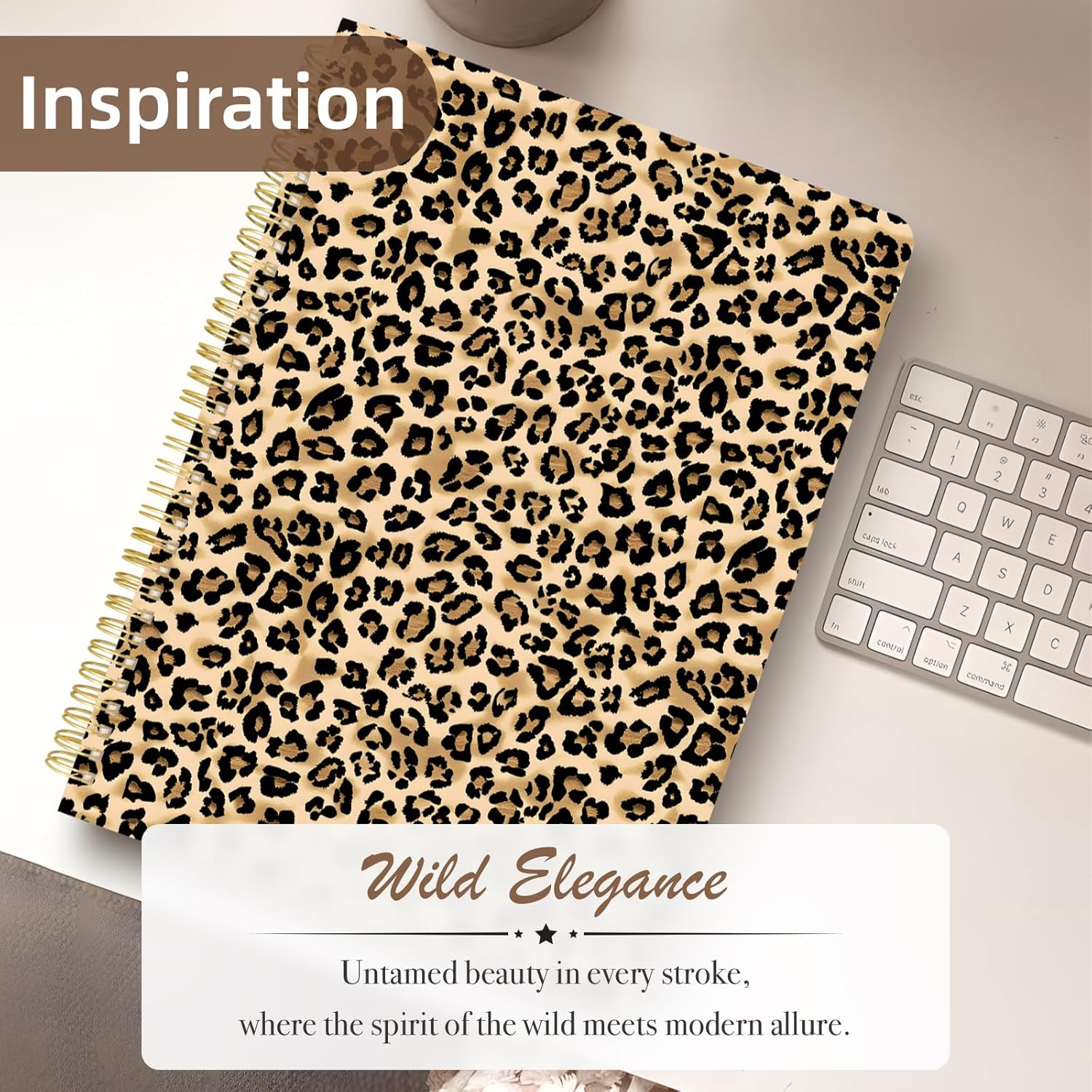 Cute Spiral Notebook journal A4 Aesthetic Pretty Design for Women Girls Kawaii with Pocket, 8.5 x 11 inch, Graph, Leopard