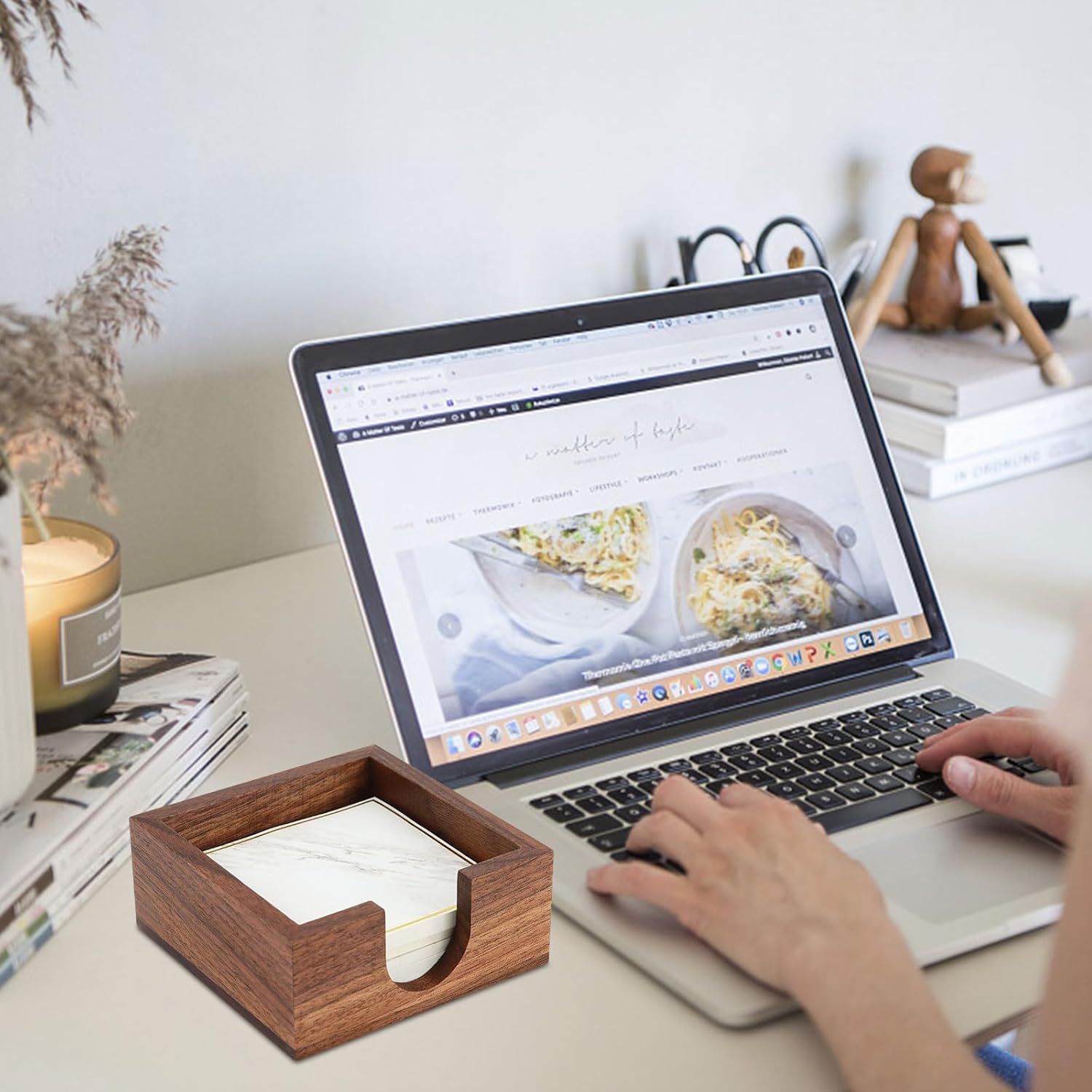 - 2. Size of the edge walnut notepads holder is 4.2" x 4.2" x 1.8", can hold over 400 sheets, stackable for keeping several note colors at hand.