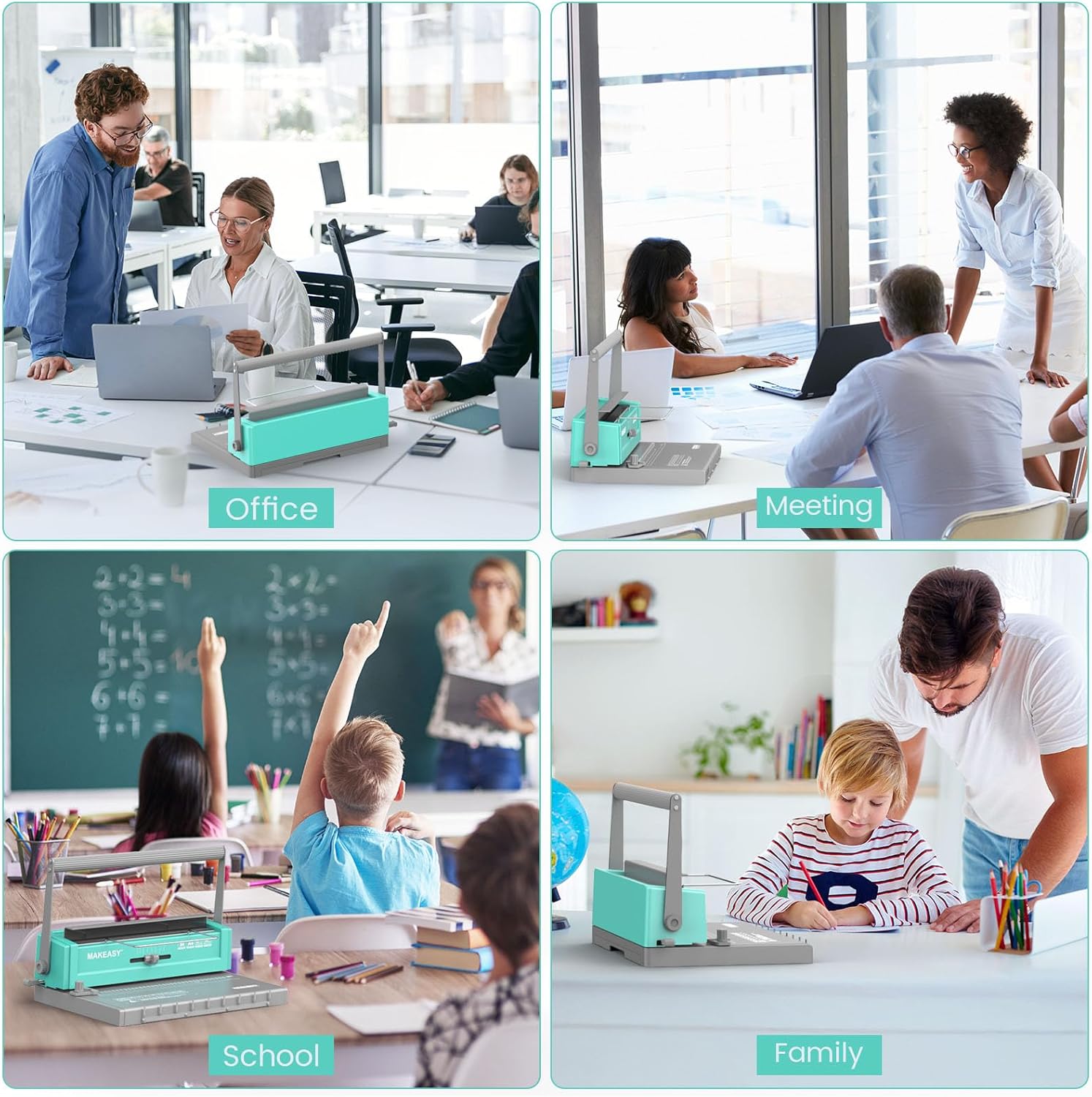 MAKEASY Binding Machine - Wire Binding Machine, 34 Hole, 12 Sheets Punch Capacity, Metal Book Maker Machine with 1 Box Wire Spines & Ring Opener