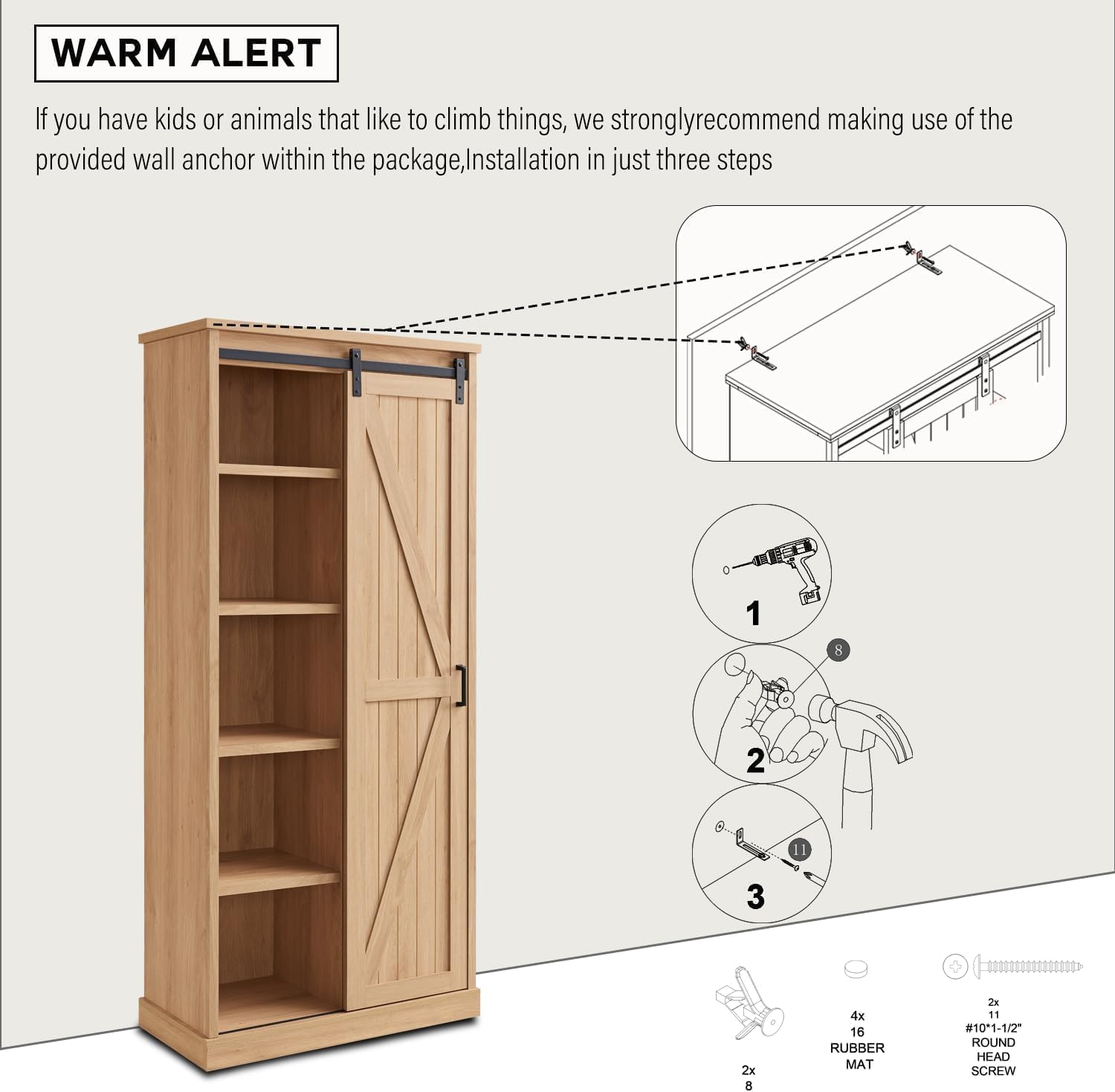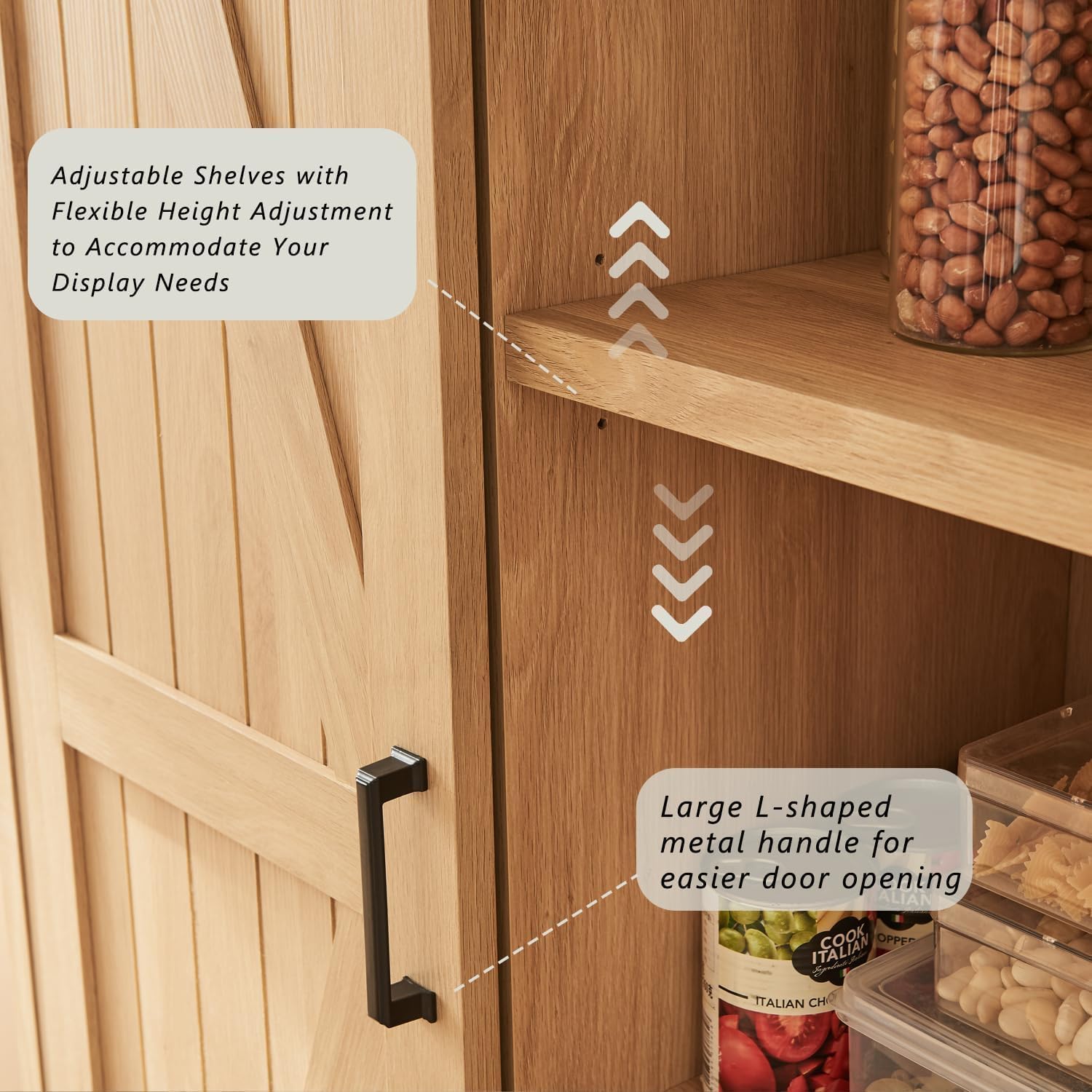 - STYLISH DESIGN: The Tall Storage Cabinet combines design with practicality. The rustic barn sliding door design makes a statement, injecting modern elegance into your living room while providing easy access to the cabinet's spacious storage space.The U-shaped metal handle adds a stylish touch to the storage cabinet. Its streamlined design is not only aesthetically pleasing, but also ensures that the cabinet doors operate smoothly and effortlessly. It is suitable for any home