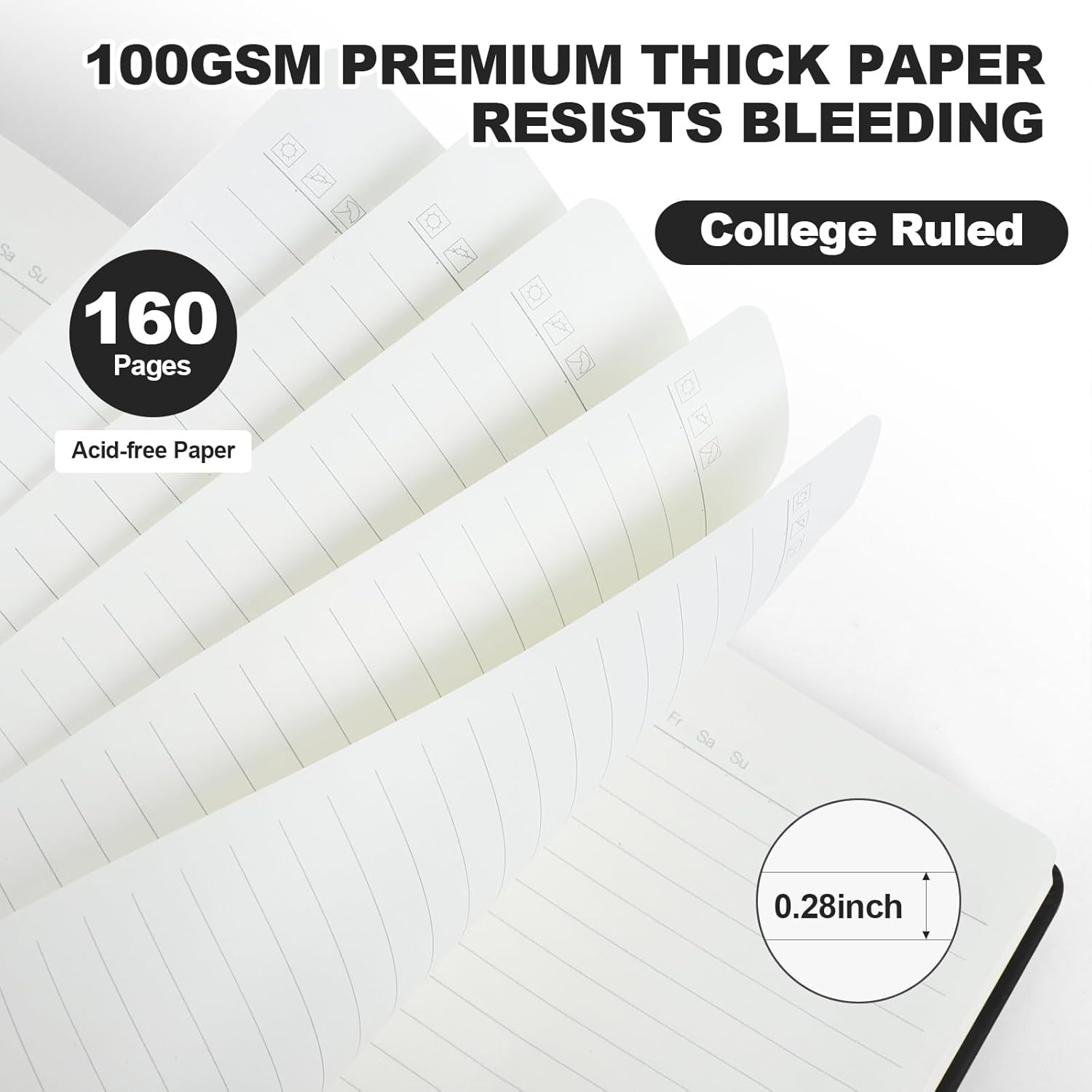 - 100GSM Premium Thick Paper:Made of high-quality 100GSM acid-free paper, it prevents long-term corrosion.The paper is smoother, making writing go more effortlessly,Provide a pleasant writing experience.This notebook's thicker than usual. No worries about ink bleeding or smudging with any pen.
