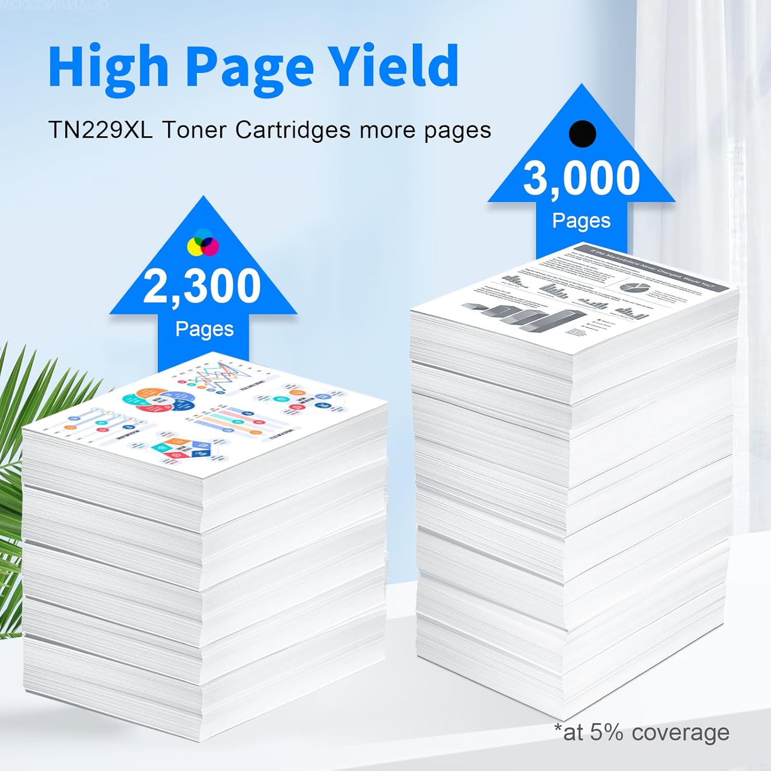 - ăEstimated High Page Yieldă:Up to 3,000 pages per TN229XLBK black toner, up to 2,300 pages per TN229XLC TN229XLM TN229XLY toner cartridges (based on 5% coverage)