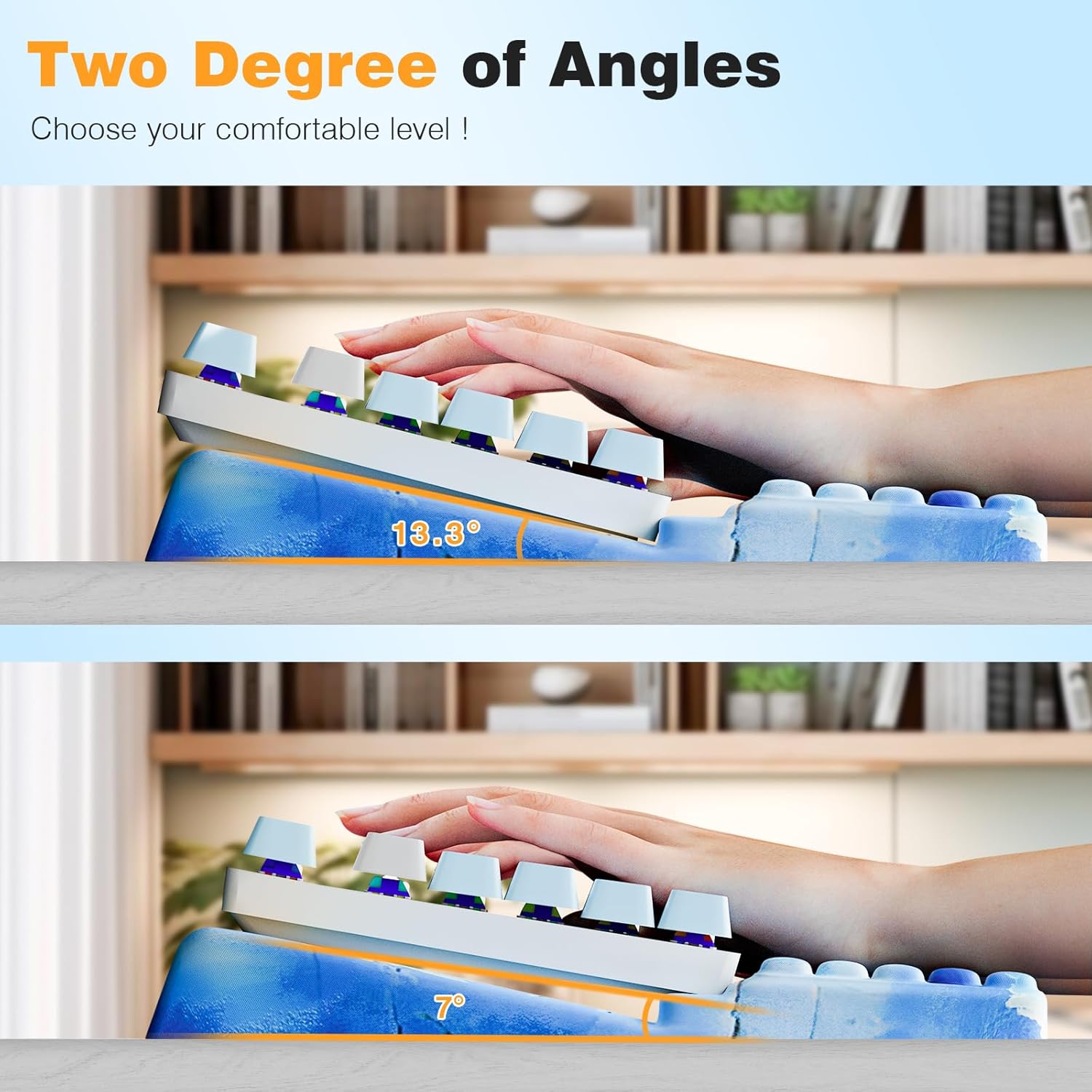 - Works with most keyboards and features two angle settings - adjust the tilt to match how you type for all-day comfort.