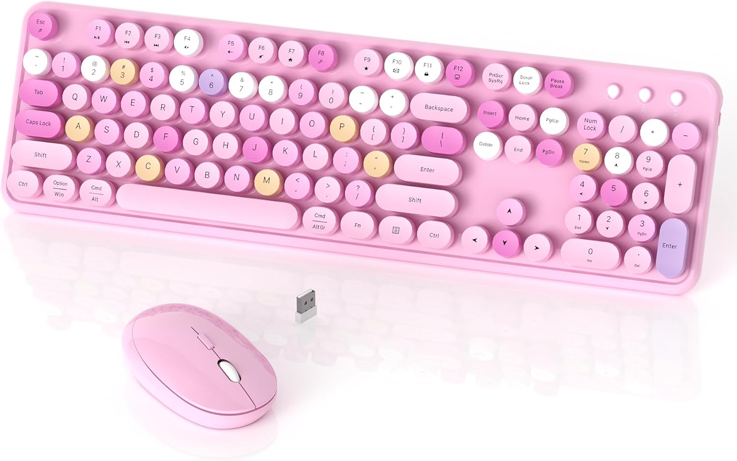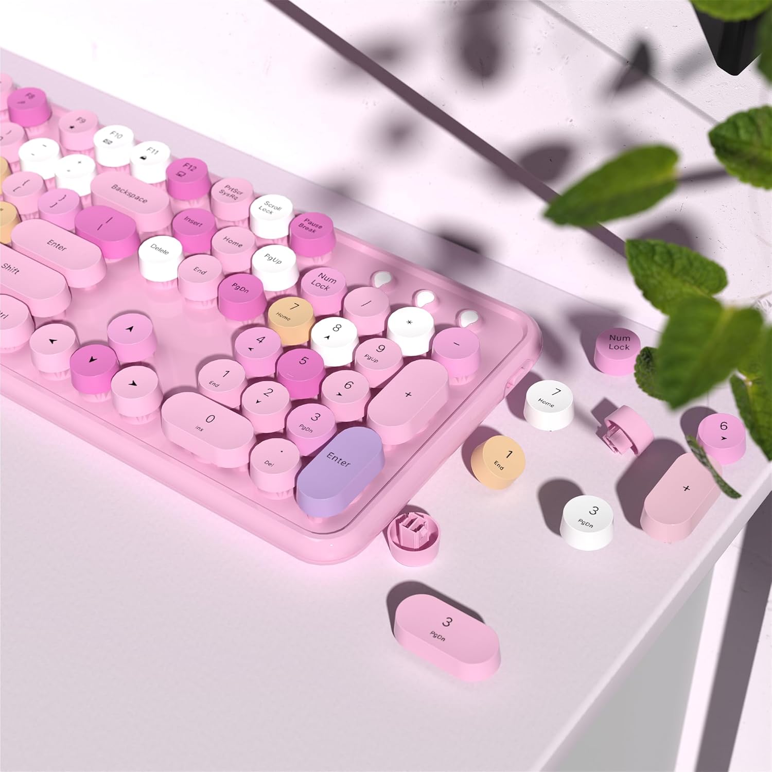 - COLORFUL WIRELESS KEYBOARD: Typewriter retro with round keycaps and clicking sounds make you enjoy typing. the latest color is unique and add vibrant to your desk