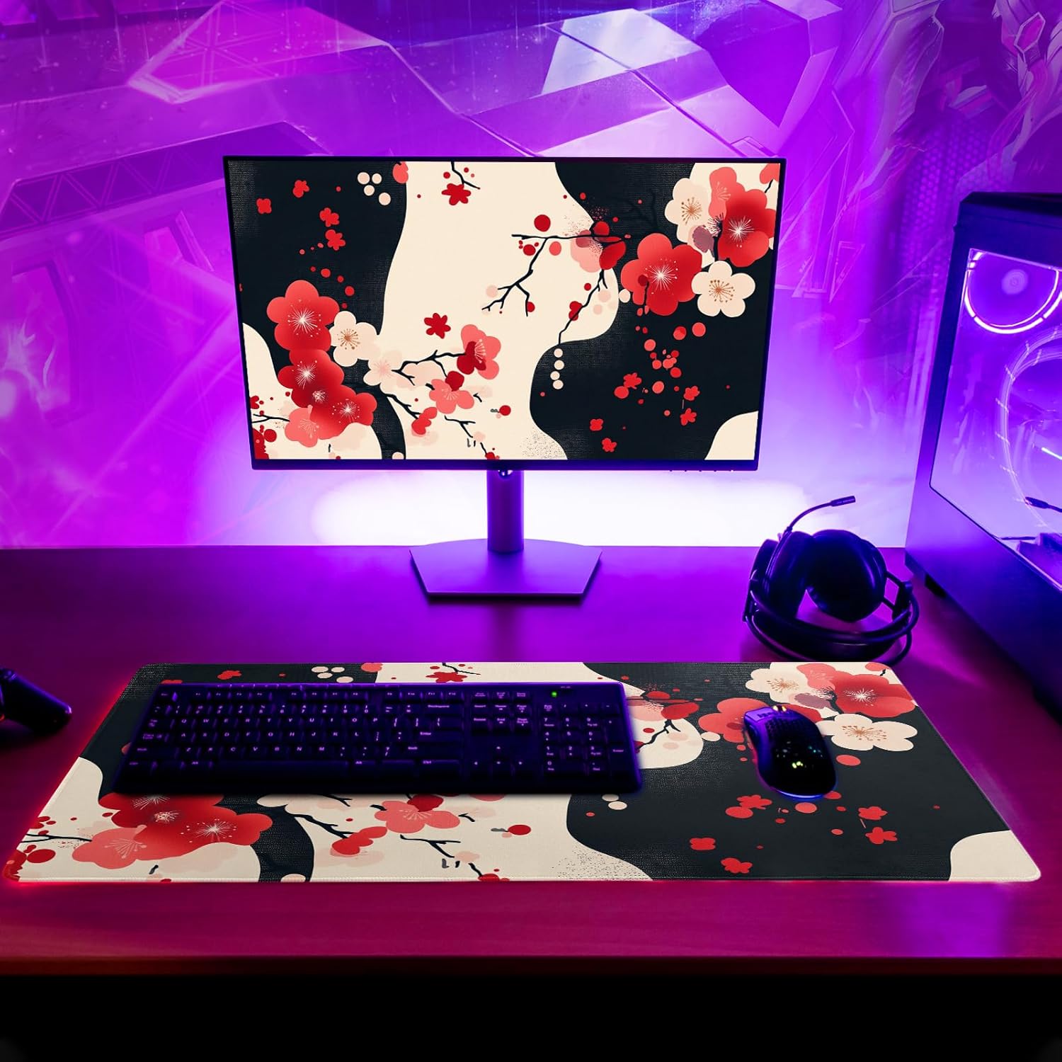 Desk Mat, Anime Desk Pad Mat, Desk Matt for Desktop, XL Large Mouse Pad for Desk, Anti-Slip Big Mousepad with Stitched Edges, Keyboard Pad Mouse Mat for Gaming and Office (Cherry Blossom 5)