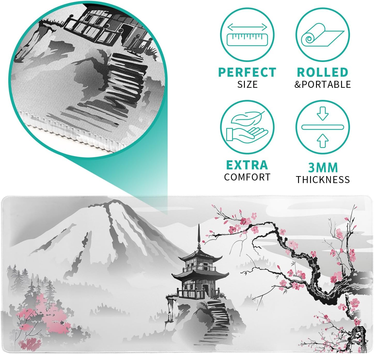 - Extended Size: The Japanese Mouse Pad Is Large Enough, 11.8''X 31.5'' ( 800mm X 300mm X 3mm), Will Fit Your Desktop Perfectly And Provide Perfect Movement Space, Offers Plenty Of Room For Gaming Or Office Works All While Protecting Your Desk, Applies To All Types Of Mouse Keyboards And More.