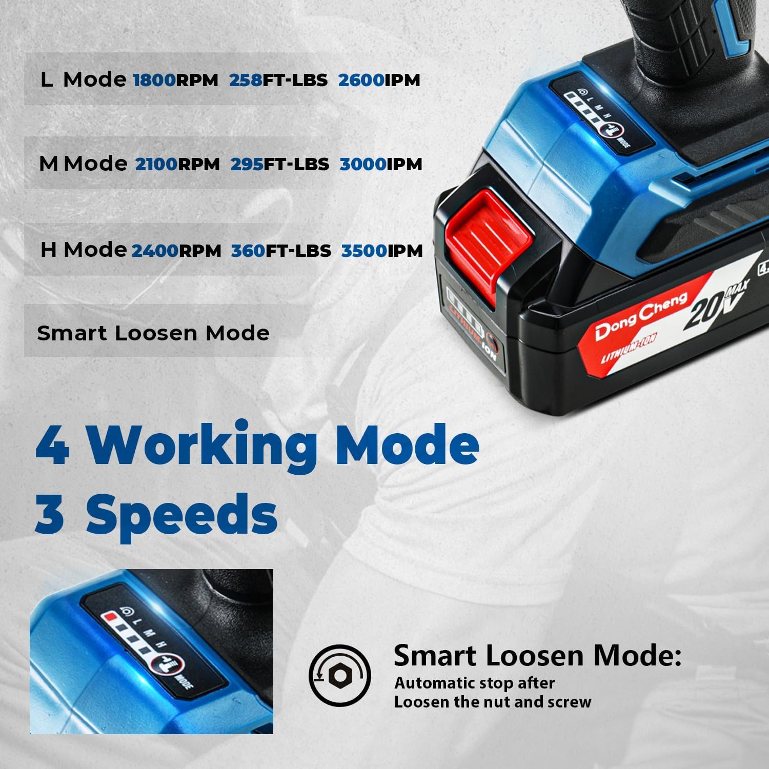 - 【3-Speed Precision Control】Offers 3 adjustable speed settings (258, 295, 360 ft-lbs), combined with a variable speed trigger for up to 20% more control, ensuring optimal power for various tasks.