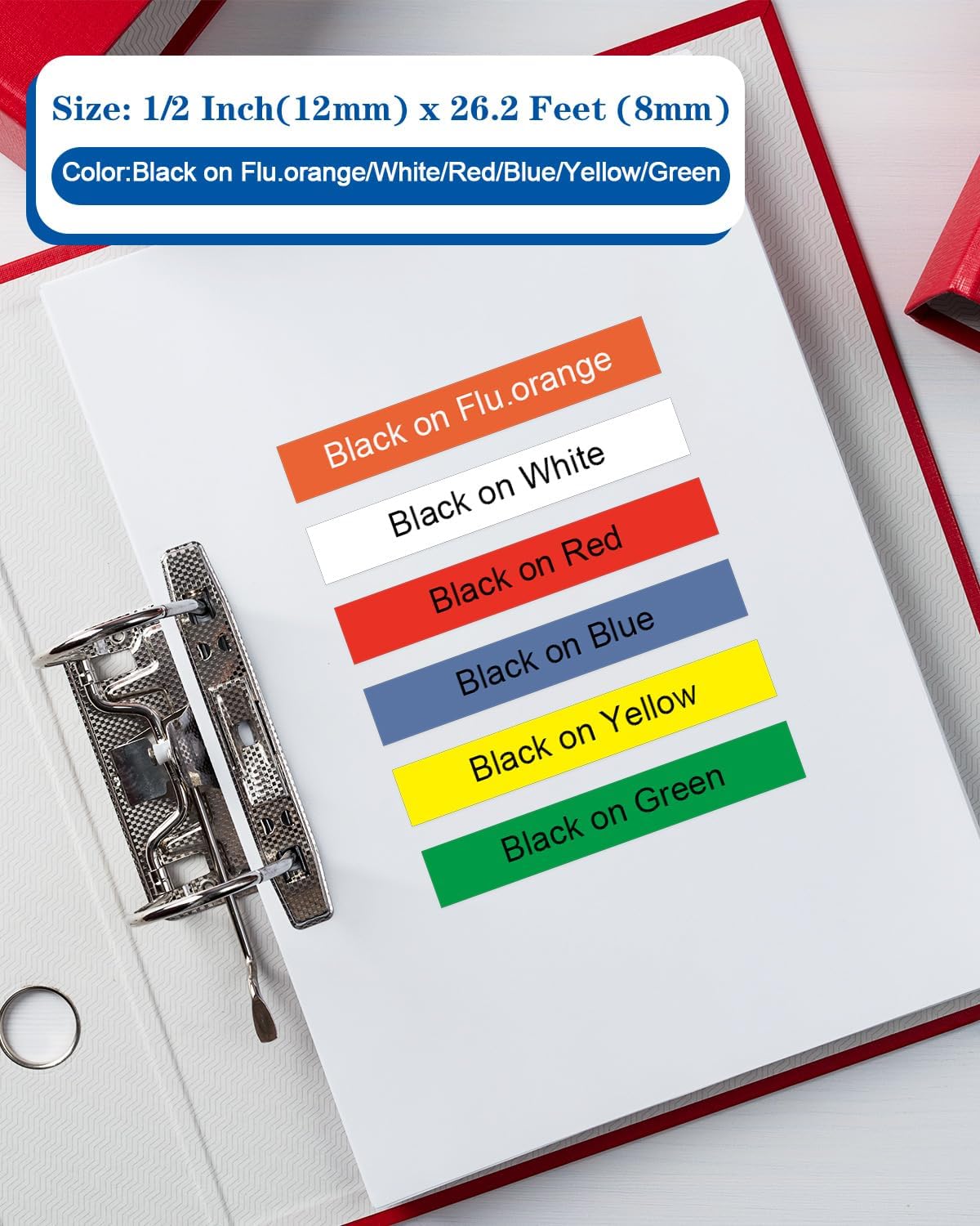 - Package Information: 6-pack compatible for brother p touch label tape TZe 12mm 0.47 laminated colored, Size: 12mm (1/2'') x 8m (26.2 feet) per label tape