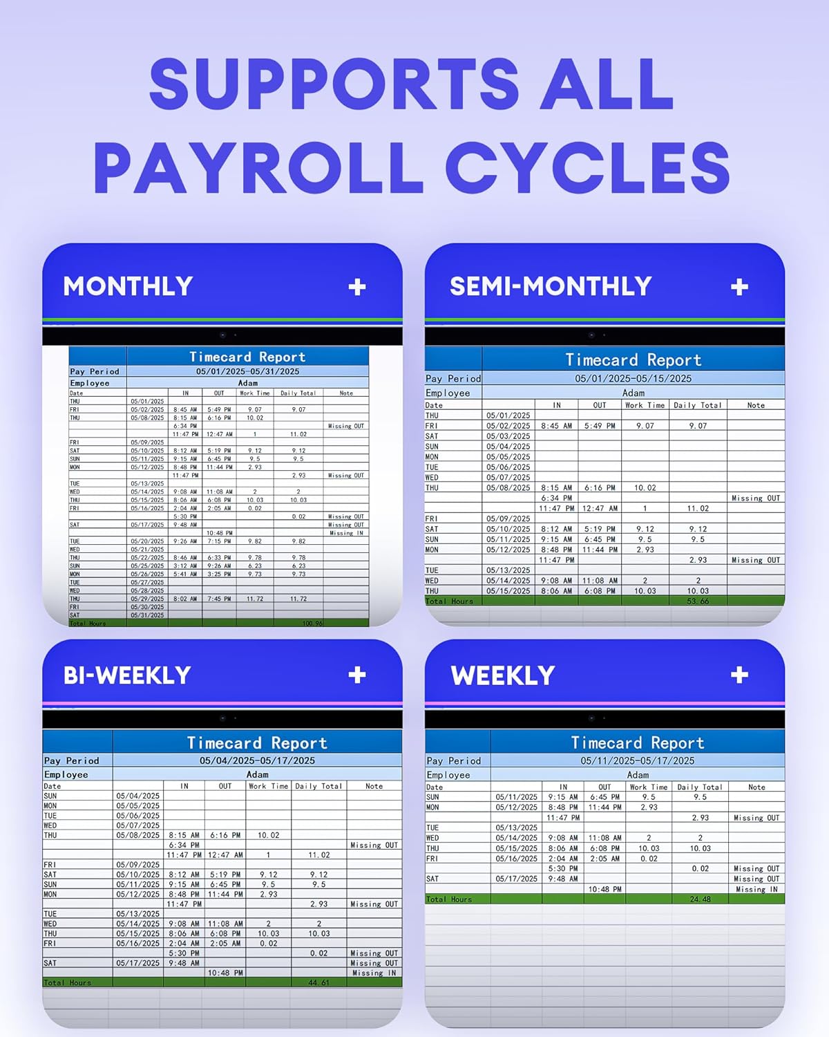 - Automated Time Calculations & Data Security: The K4 automatically tracks and calculates employee hours, with attendance reports exportable via USB or the app. Its built-in 2000 mAh battery ensures data protection during power outages, securely storing punch records and employee details.