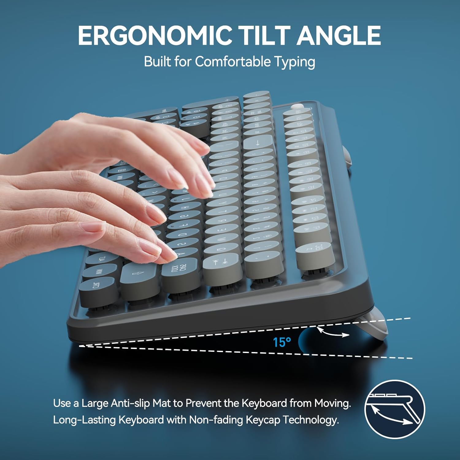 FD Wireless Keyboard and Mouse Combo - 2.4G Full-Sized Cute Colorful Mouse and Keyboard with 104 Round Keys Retro Typewriter Keyboards for Laptop/Windows/PC - Grey Gradient