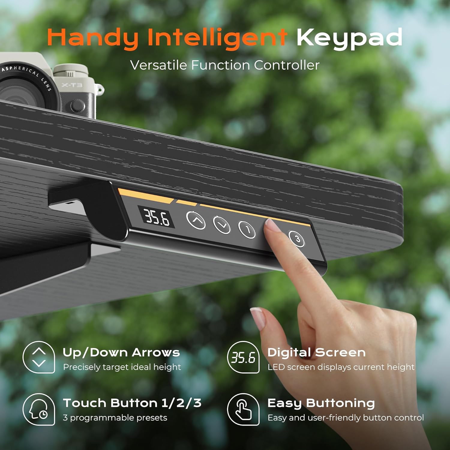 - ăMulti-Function Intelligent KeypadăOperating Voltage: 110 - 220V. Featuring a sleek LED display and easy-buttoning keypad, this adjustable standing desk offers 3 customizable height presets and precision up-and-down controls. This standing desk for walking pad allows you to switch between sitting and standing at the press of a button, with an adjustable height range from 28.3" to 46.5". Say goodbye to sedentary habits and hello to improved focus, energy, and posture with this electric standing desk