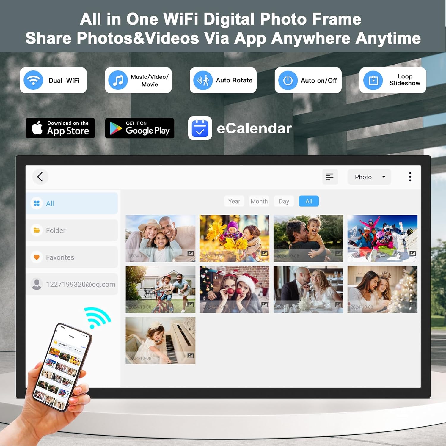 - ◉[Unlimited Memory, Photo Display & Elegant Wall Design] This electric wall calendar doubles as a digital photo and video frame with 64GB internal storage and unlimited cloud capacity. Perfect for preserving family shared memory archives while serving as stylish home décor. Energy-saving sleep mode and WiFi connectivity keep it efficient, while the wall-mounted planners design fits seamlessly into home organization or office schedule spaces.