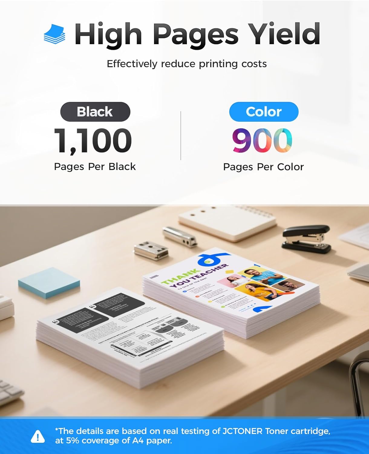 - The latest chip version: The JCTONER toner cartridges are equipped with the latest version of built-in chips, ensuring perfect compatibility between each toner cartridge and the printer. This enables you to print efficiently while maintaining stability and reliability, making installation convenient without the need for manual adjustments. All JCTONER toner cartridges have undergone strict quality testing and have obtained ISO9001 certification. High-quality toner cartridges can meet the demand for high printing volume. The fine toner ensures clear and stain-free printing results and extends the lifespan of the printer. You can purchase with confidence.