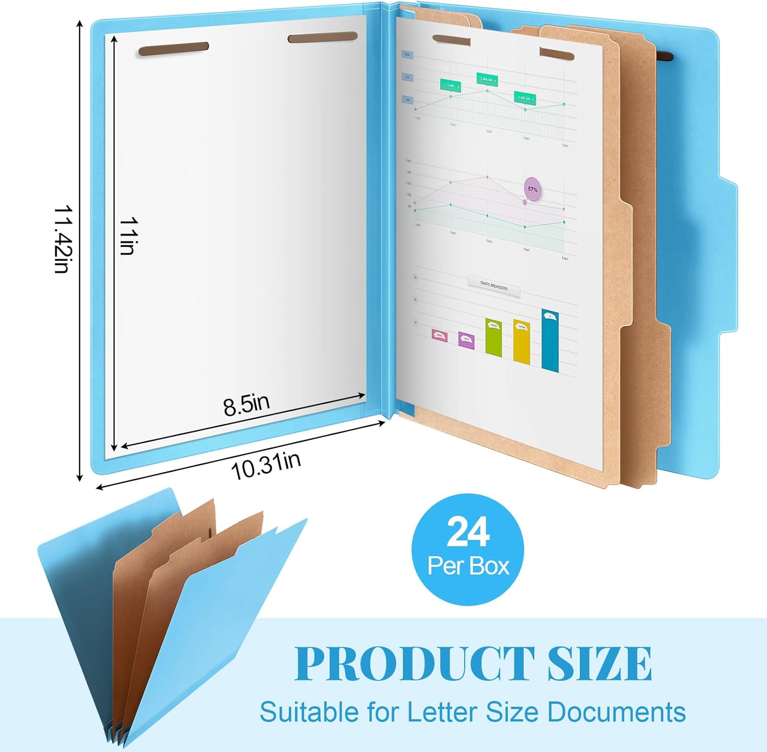 24 Pcs Classification Folders Letter Size Bulk - 2 Dividers Pressboard File Folder with 3. 5 Inch Expansion, 2 Prongs Fastener, Heavy Duty Office File Organizer for Teacher Medical (Blue)