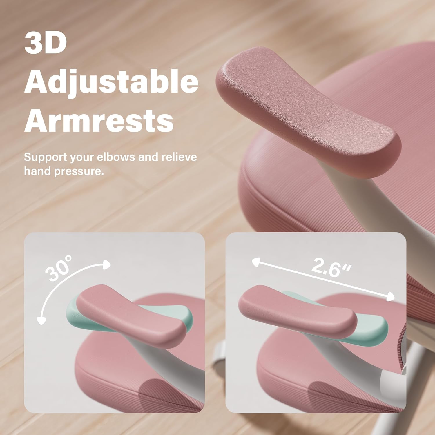 GYI Computer Desk Chair, Ergonomic Office Desk Chairs with Mesh Back, Adjustable Lumbar Support, Height, 3D Flip-up Arms, Wheels, Rocking Function (Pink)