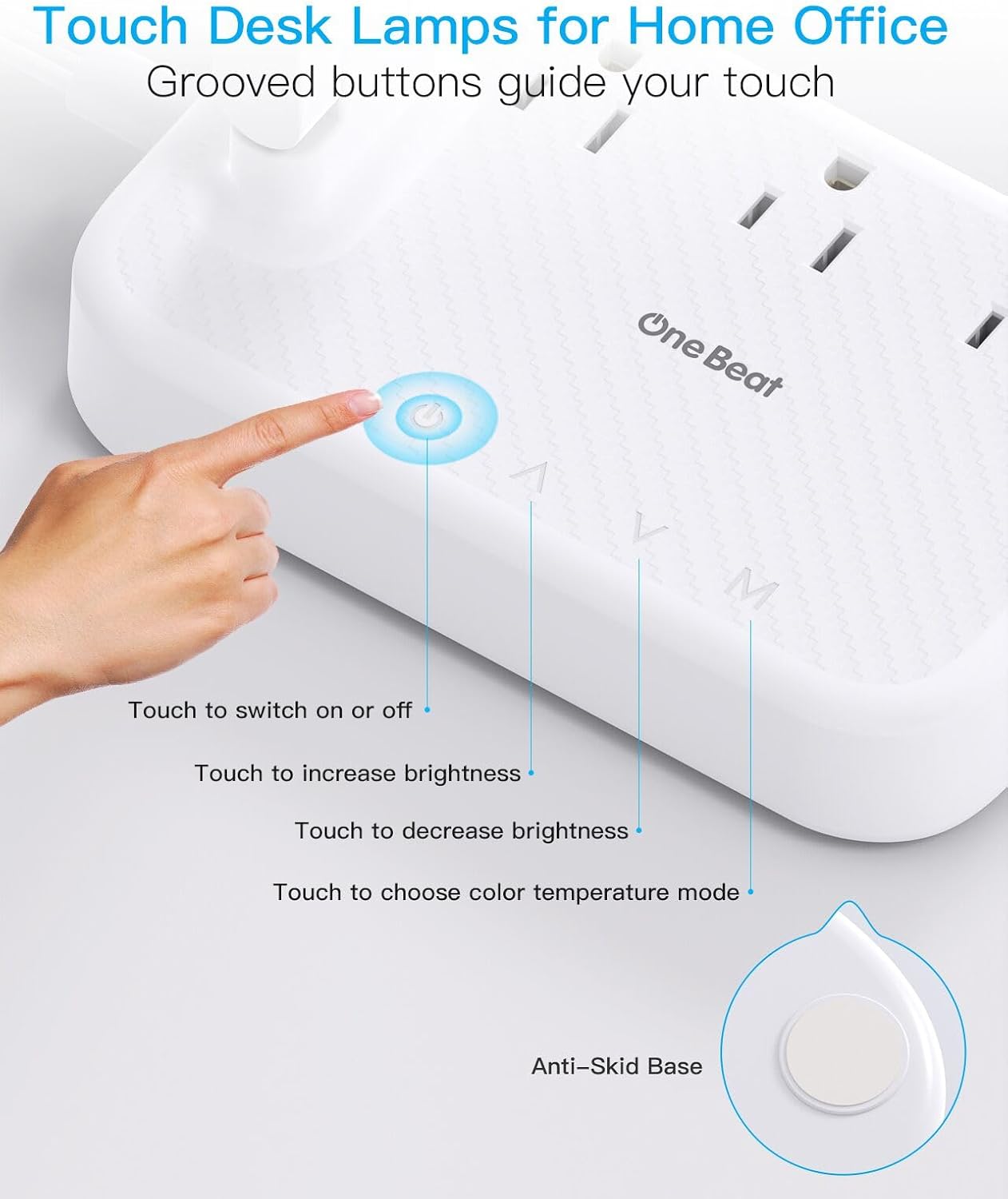 One Beat Desk Lamp with 6 Outlets 4 USB Ports(2×USB-C),Eye Protection Table Lamp Power Strip with 4 Color Modes 5 Brightness Touch LED Desk Lamps for Home Office College Dorm Room Essentials(White