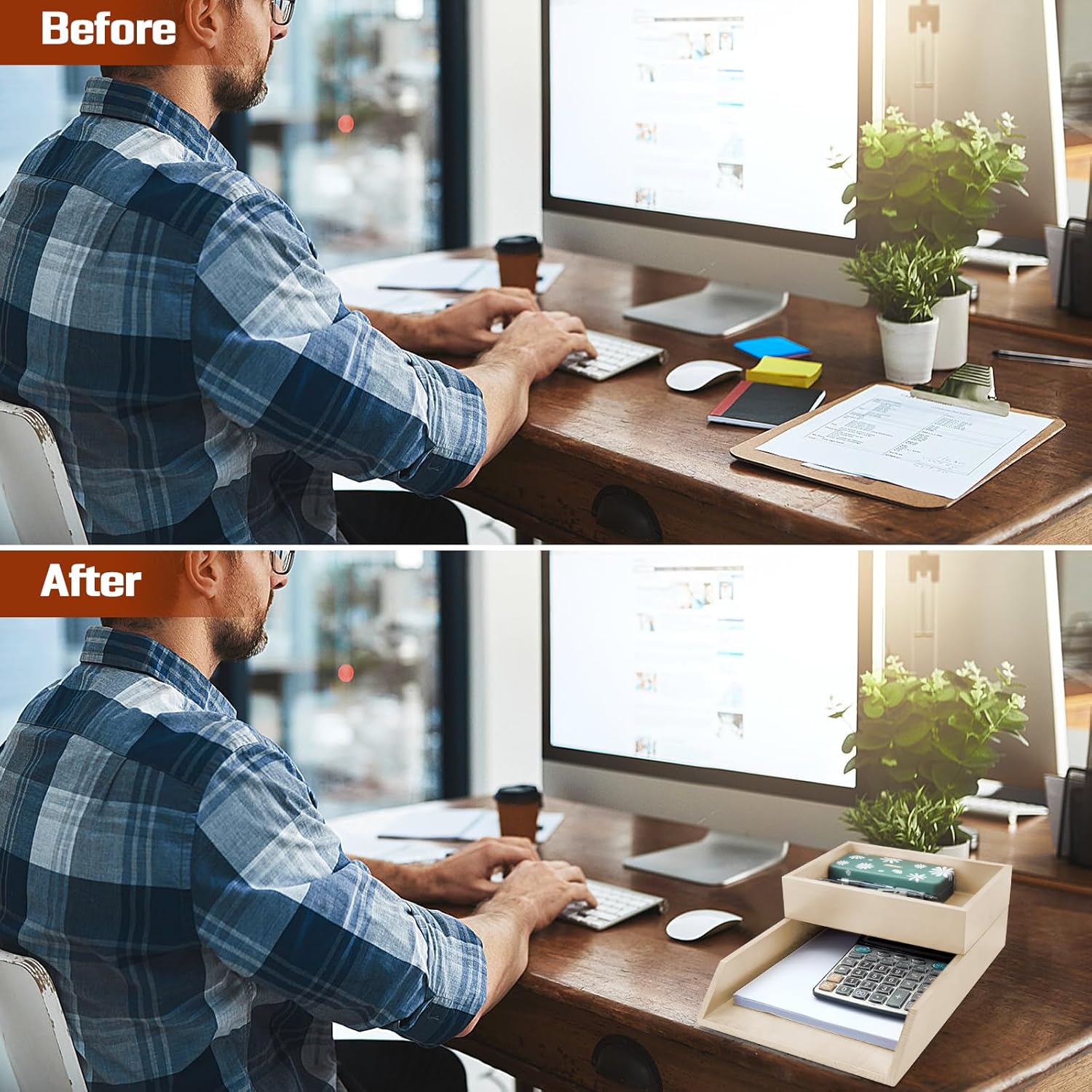 - Multifunctional Storage: It is a multifunctional storage box. The lower layer can store office supplies such as letters and documents in an orderly manner to avoid clutter on the desktop. The upper layer provides exclusive space for various stationery, which is clear at a glance when looking for things. Whether it is daily office or studying and working at home, the relevant items can be stored in an orderly manner.