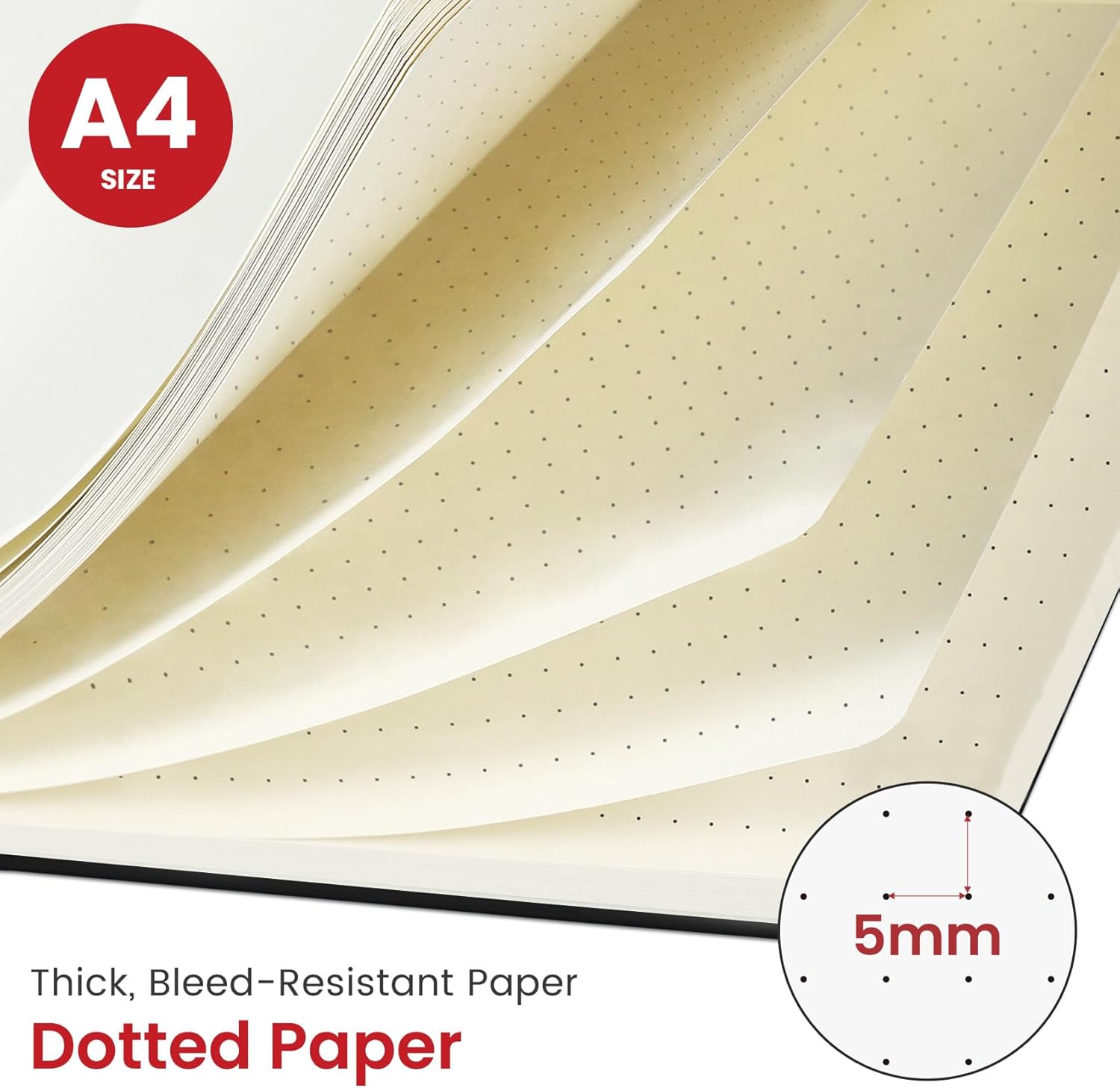 - Large A4 Dotted Spiral Notebook: Measuring 8.5" x 11", this large A4 notebook provides dotted pages for your creativity. With spacious dotted pages, it's perfect for sketching, brainstorming, planning, and journaling—whether at work, school, or in your home office.