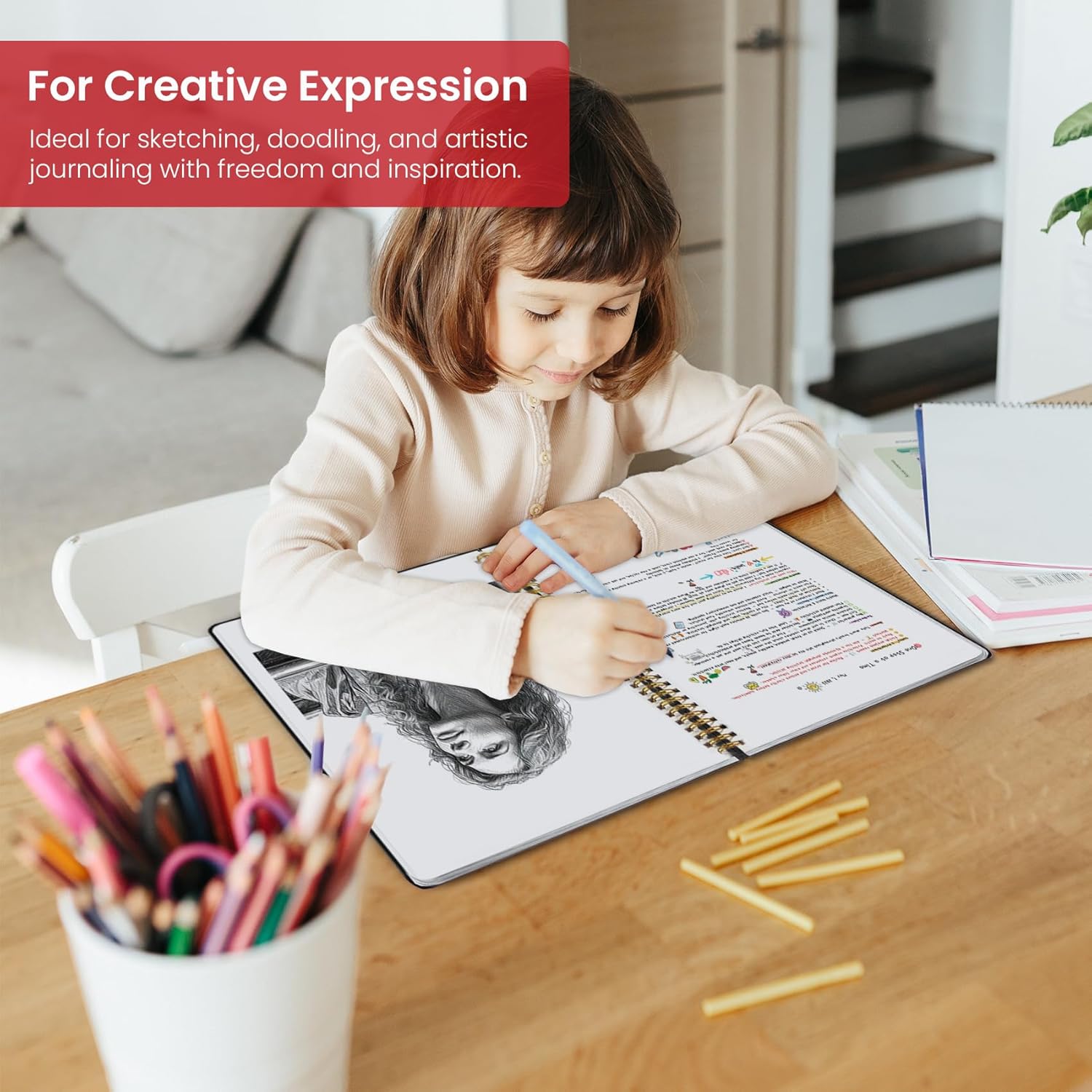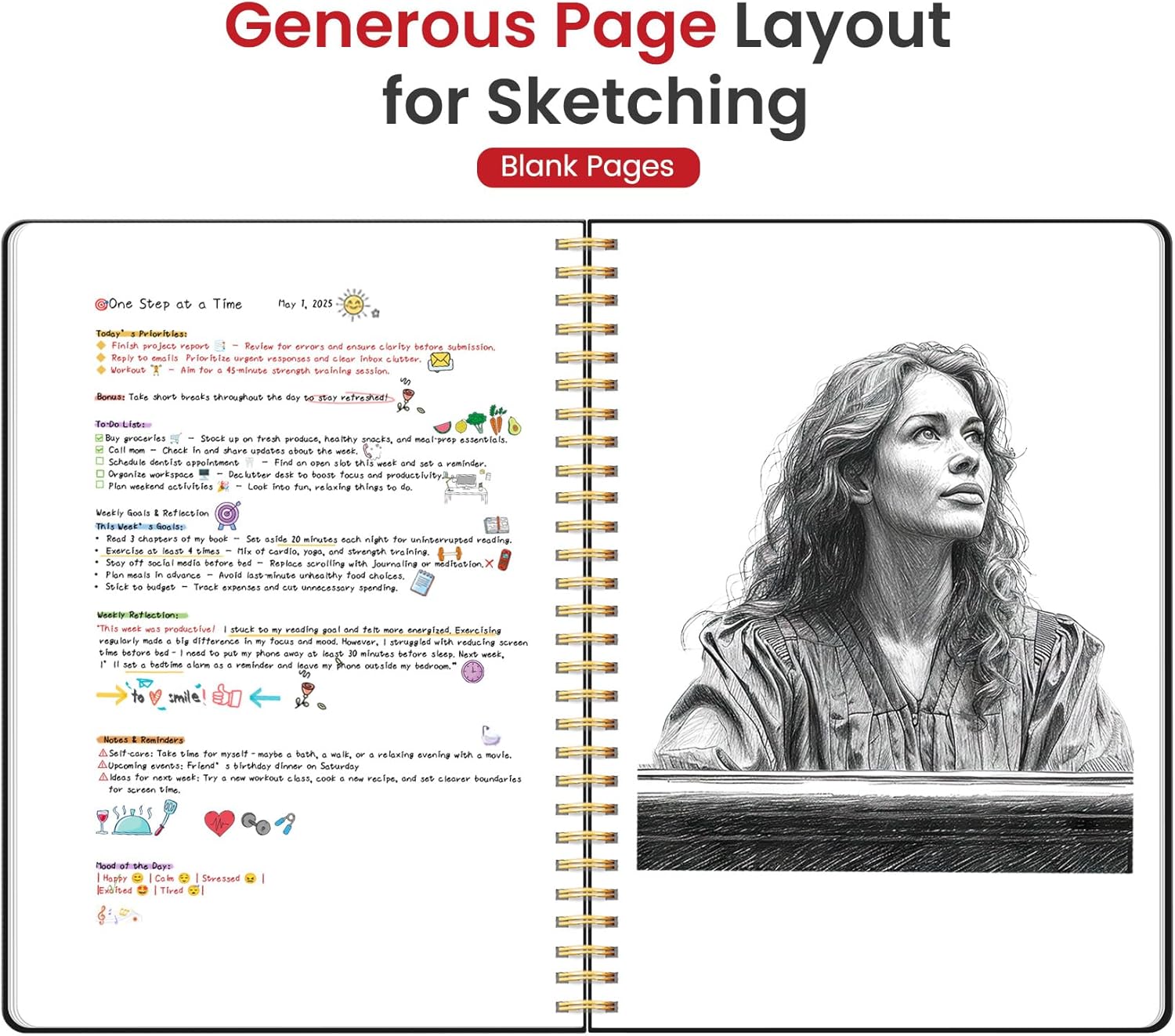 - Large A4 Blank Spiral Notebook: Measuring 8.5" x 11", this large A4 notebook provides blank pages for your creativity. With spacious unlined pages, it's perfect for sketching, brainstorming, planning, and journaling—whether at work, school, or in your home office.