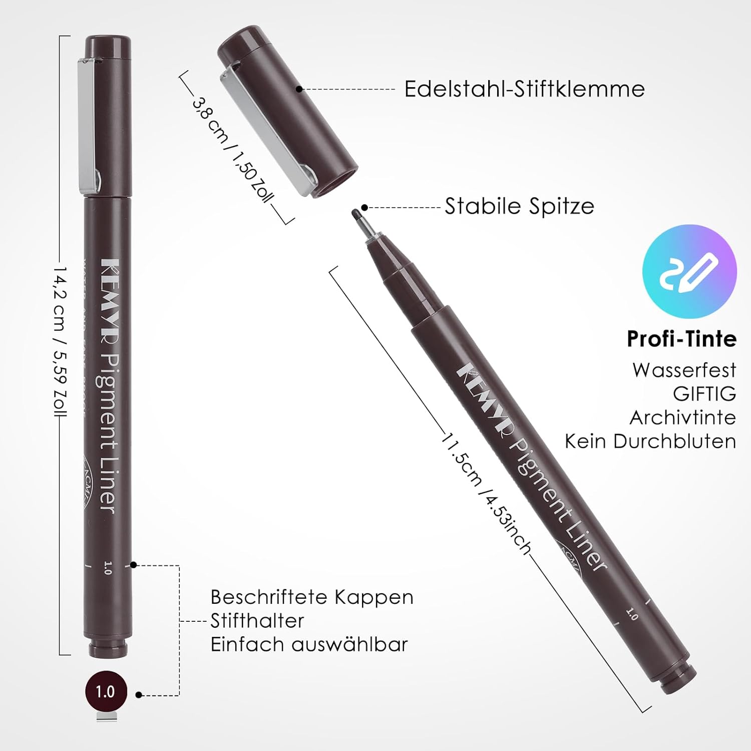 - Convenient and user-friendly: Both the pen body and cap have line width markings, allowing you to quickly find the line width you need from any angle. The stainless steel pen clip is very durable, and you can clip it onto your sketchbook, notebook, diary, and marker pads.