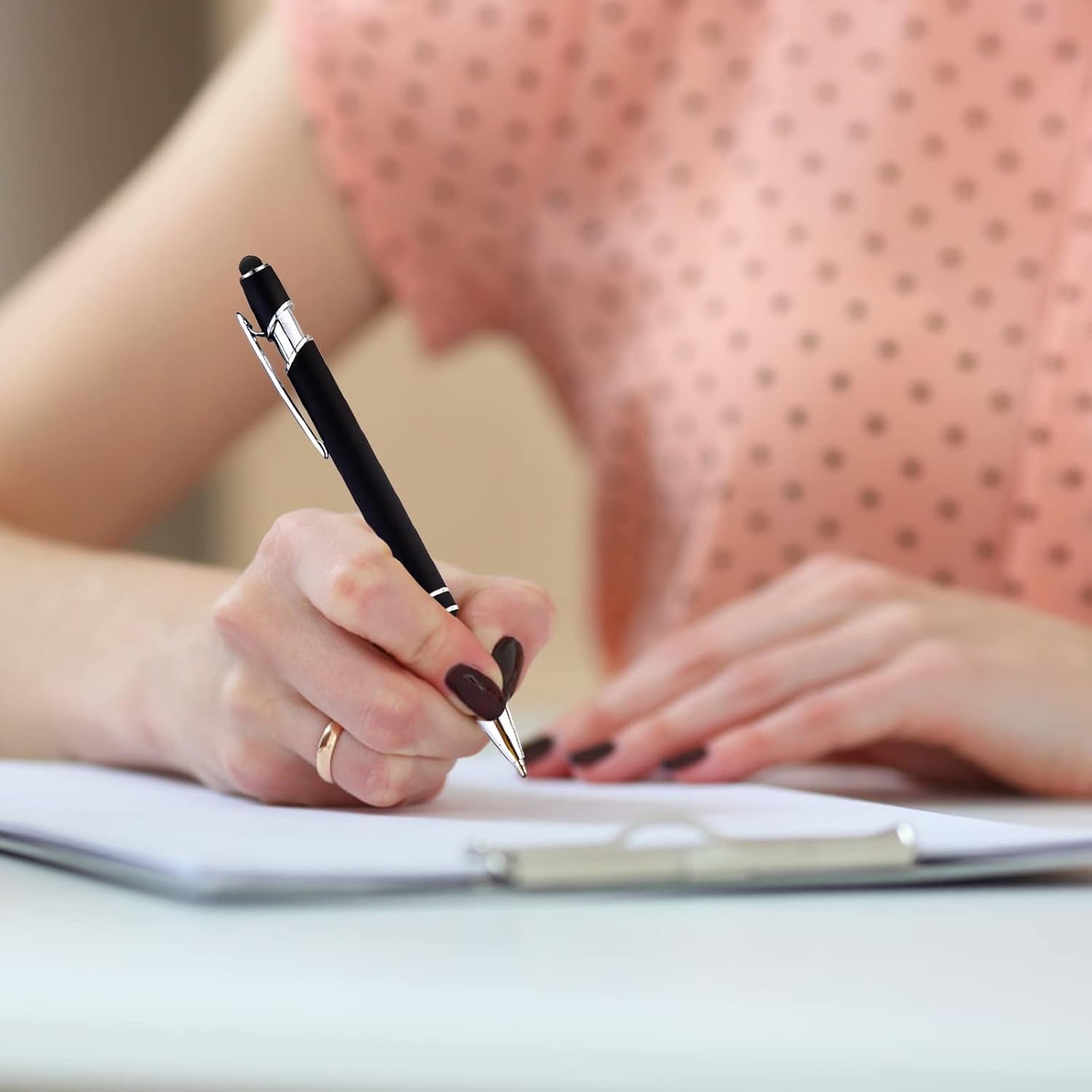 - ❤【Convenient Quantity】Get 8 black ballpoint pens with stylus tips, perfect for daily use and replacements. Each pen is 5.5 x 0.4 inch/ 14 x 1 cm, the ideal size for a pen. Note: The ink refill is black.