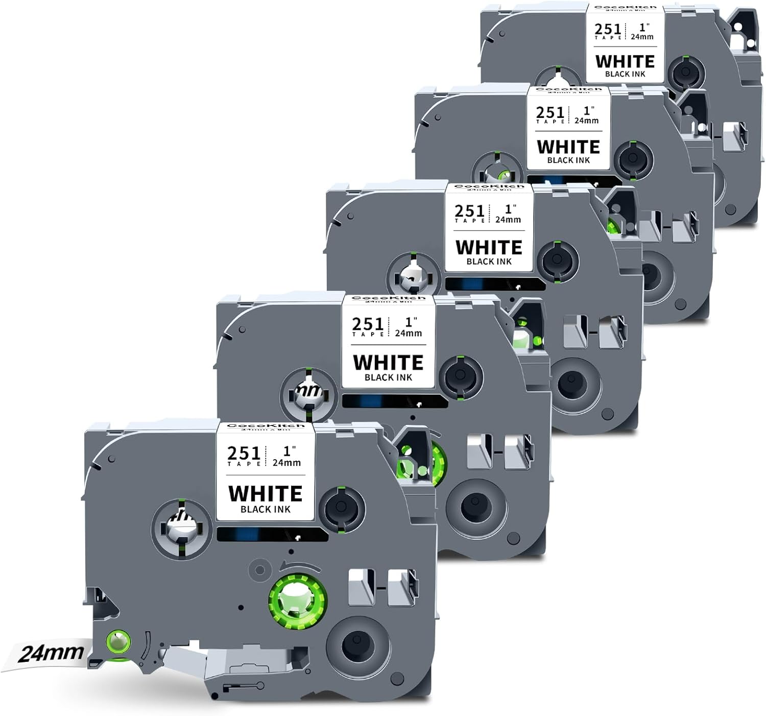 - Package Includes: 5-Pack Replacement for Brother Label Maker Tape TZe-251 TZe251 TZ251 TZ-251 TZe TZ Tape 24mm 0.94 Laminated, Color: Black on White