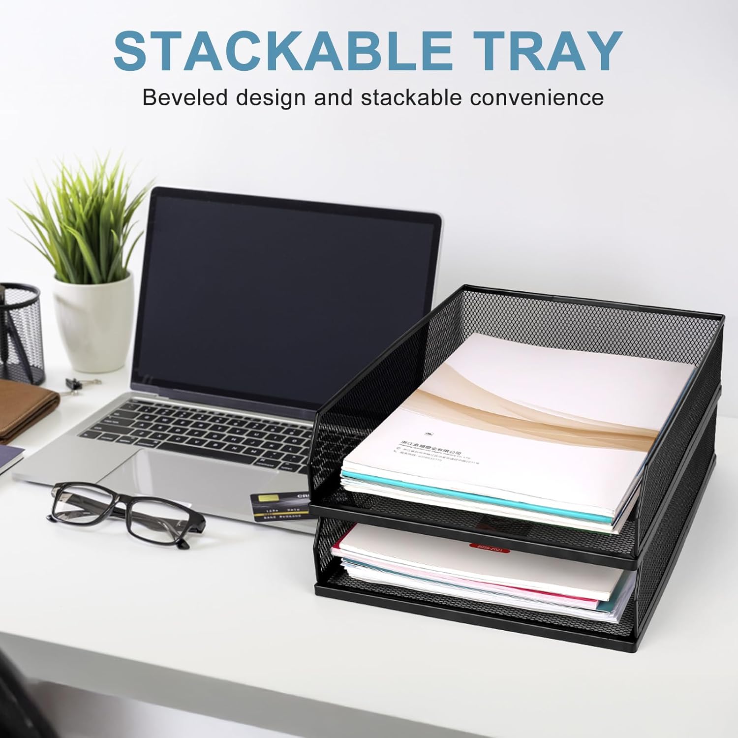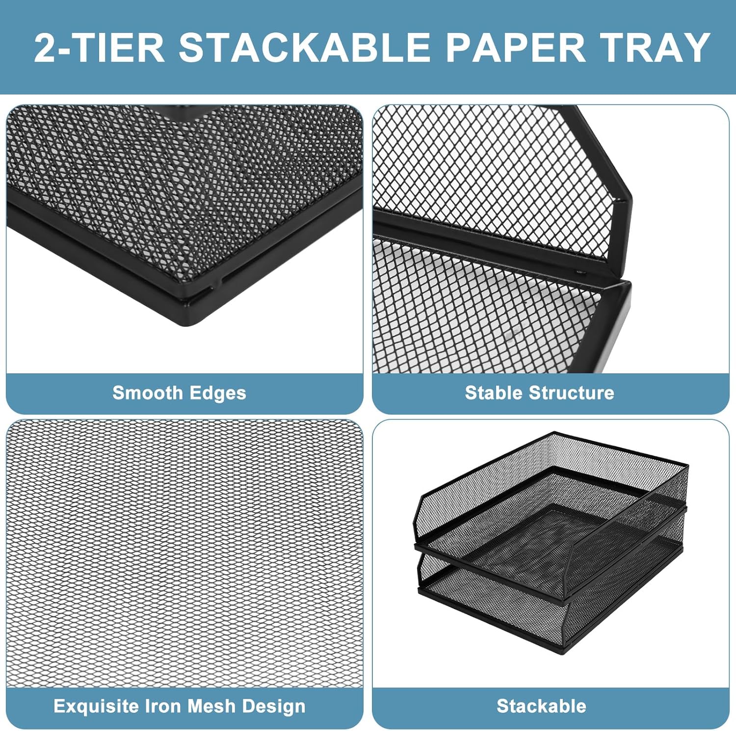 Stackable Paper Tray Organizer, Metal Mesh Wire Letter Tray, Letter Trays Organizers, Front-Load Paper Holder Storage for Office, School, Home,2 Pcs