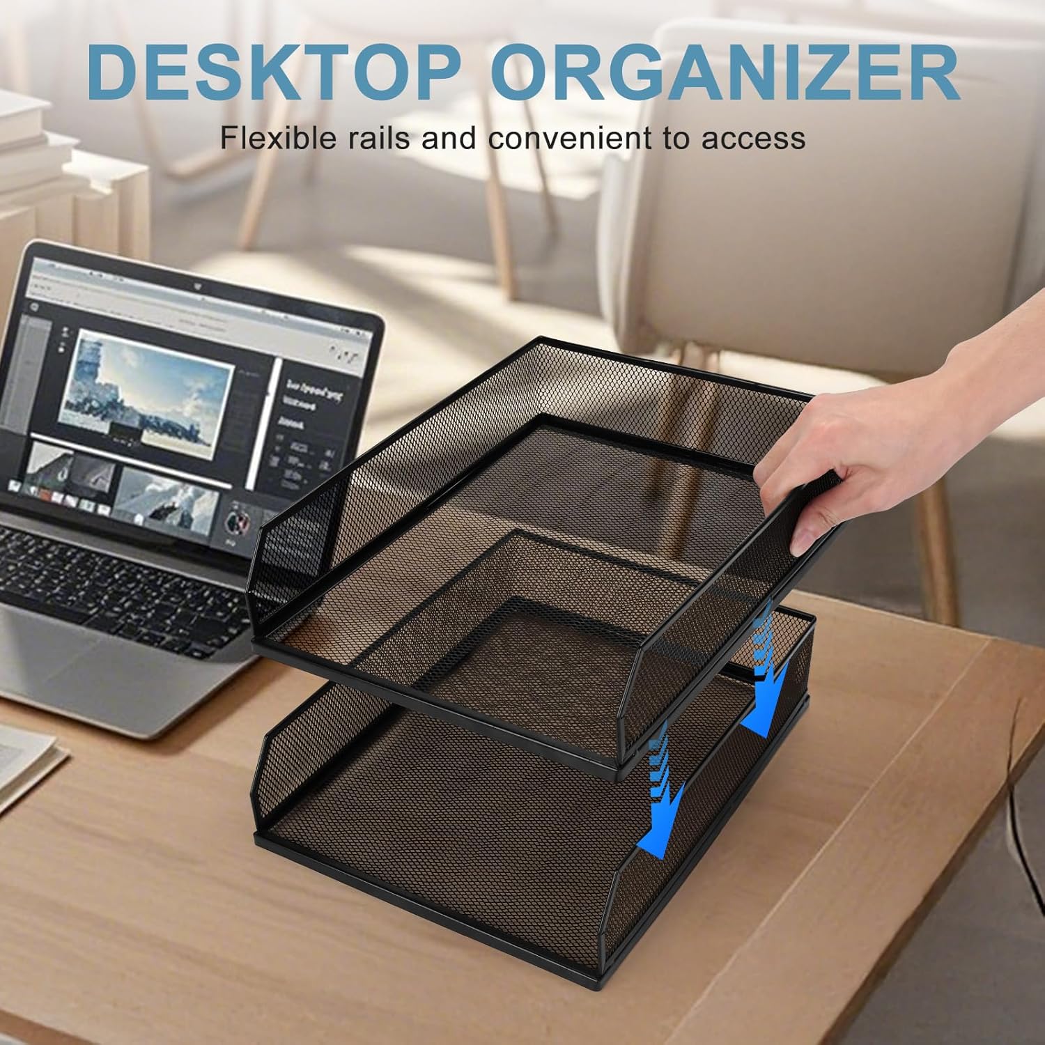 - Large Capacity Desktop Organizer: This 2 Tier Letter Tray Desktop Organizer is the ideal solution for keeping your workspace neat and organized. With its large capacity, you can easily store and categorize your important files, documents, magazines, newspapers, A4 size paper and office supplies.