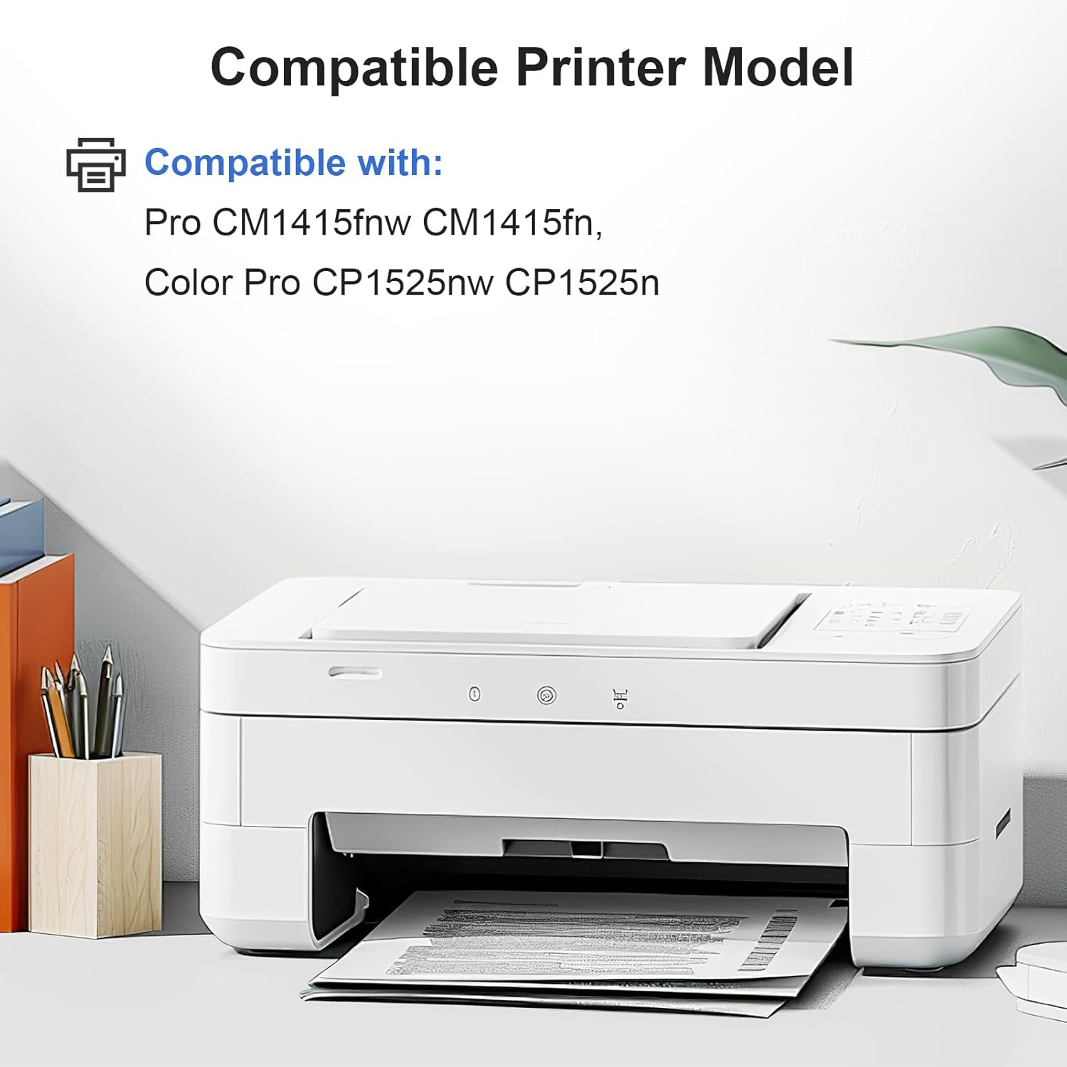 - Our 128A Toner Cartridges High Yield 4 Pack (with Chip) Compatible for HP 128A CE320A CE321A CE322A CE323A Work with HP Pro CM1415fn CM1415fnw CP1525n CP1525nw Printer.