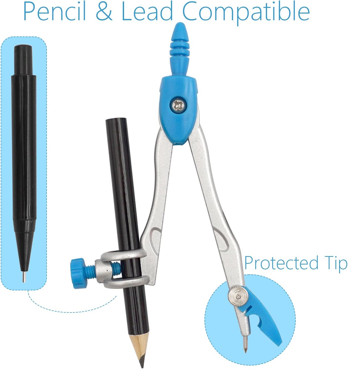 - Akuoly Drafting Compass Kit Starter Math Set Featuring Geometry Compass, Protractor, Set Squares, and Ruler – for School Graders Math Study with Every Piece Compact in Carrying Case, Classic Blue